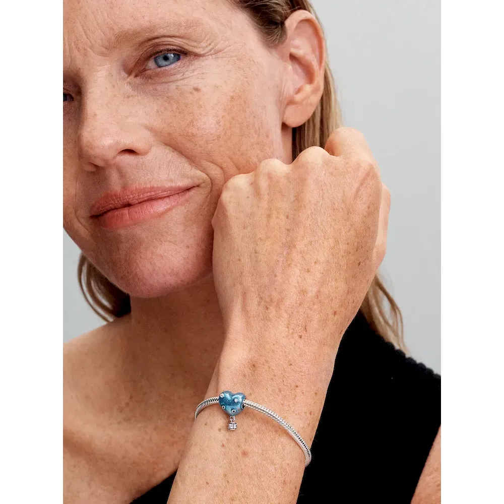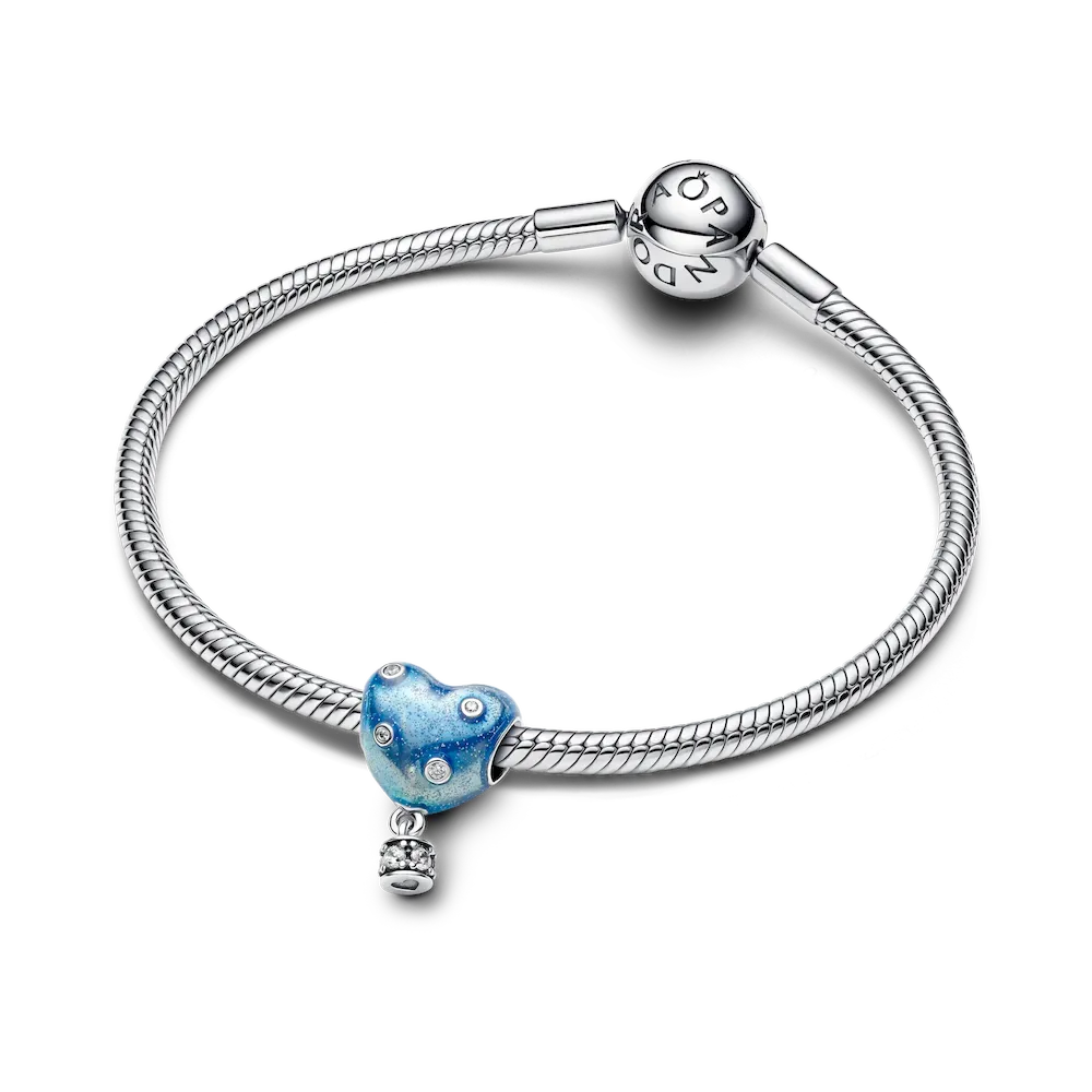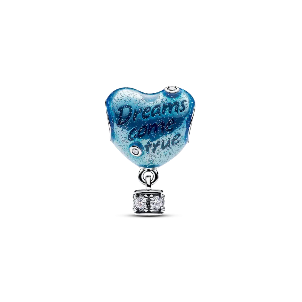 Keep your head and heart in the clouds with our Hot Air Balloon Heart Charm. Crafted in sterling silver with glittery blue enamel, this charm features the engraved message