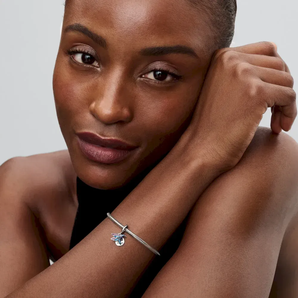 This shimmering hummingbird charm is crafted from sterling silver and features the message