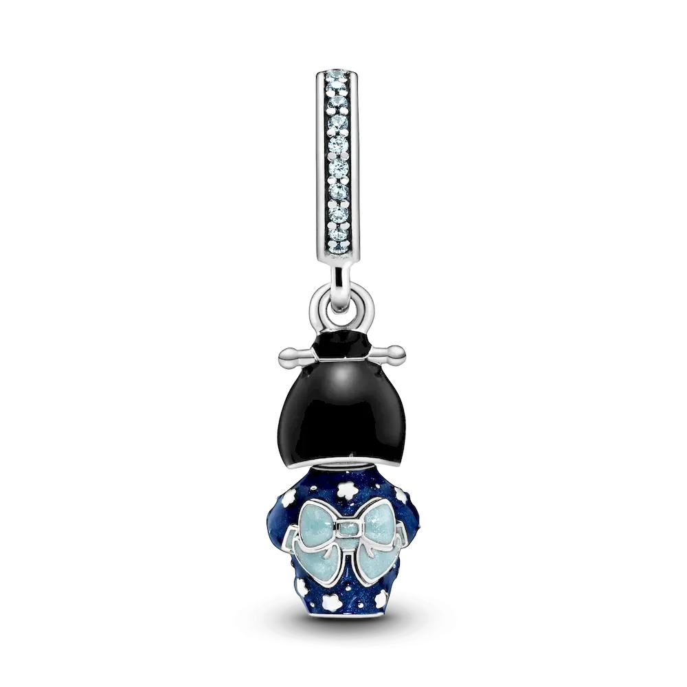 Geishas are the classic symbol of Japanese culture and represent feminine power, mystery and intrigue. The Pandora Japanese Doll Charm wears the iconic kimono fastened with a large obi knot and finished in shimmering blue enamel. This Japanese doll charm has 23 bead-set forever blue crystals atop sterling silver. Wear it as a symbol for femininity and intrigue or as a way to express your love of Japanese culture.