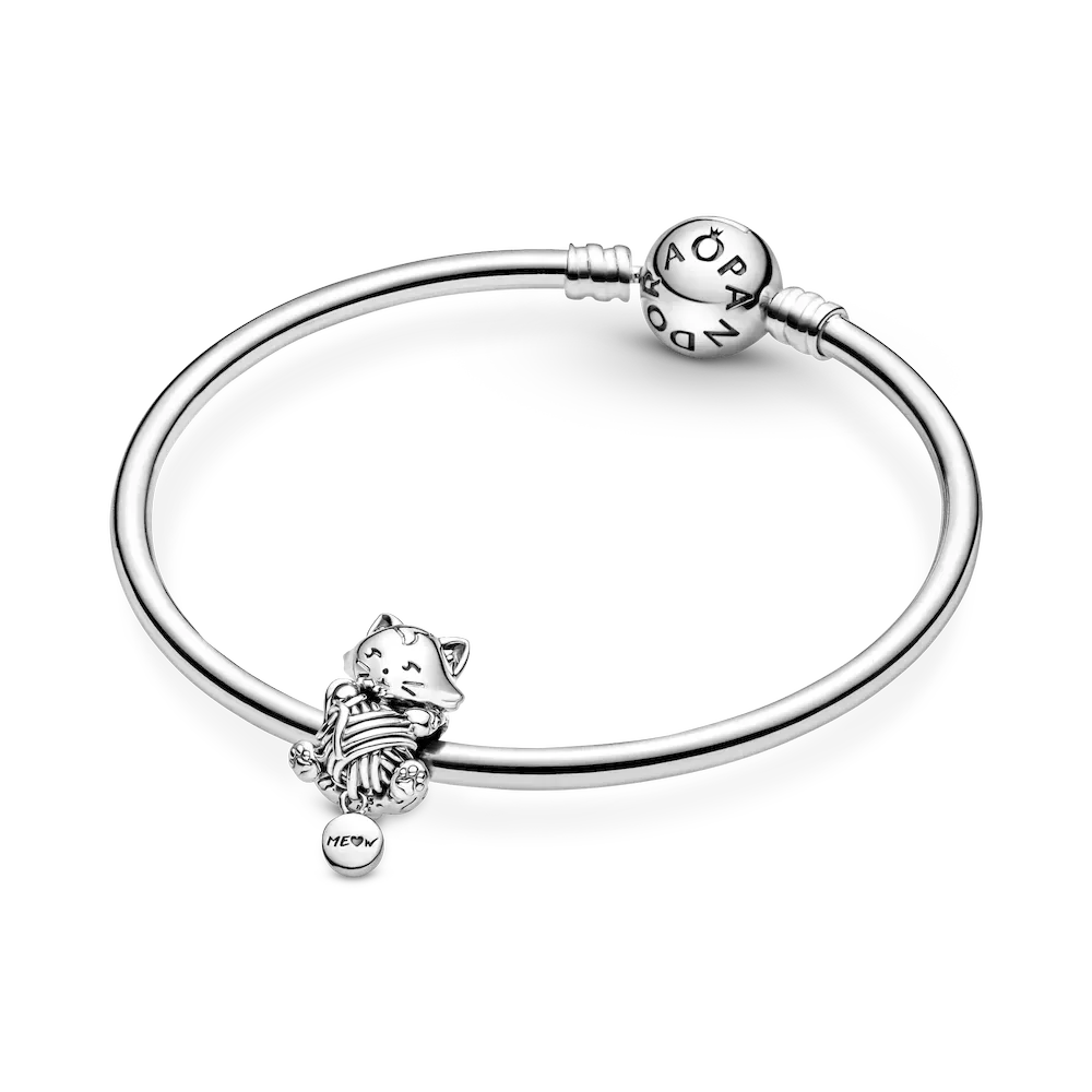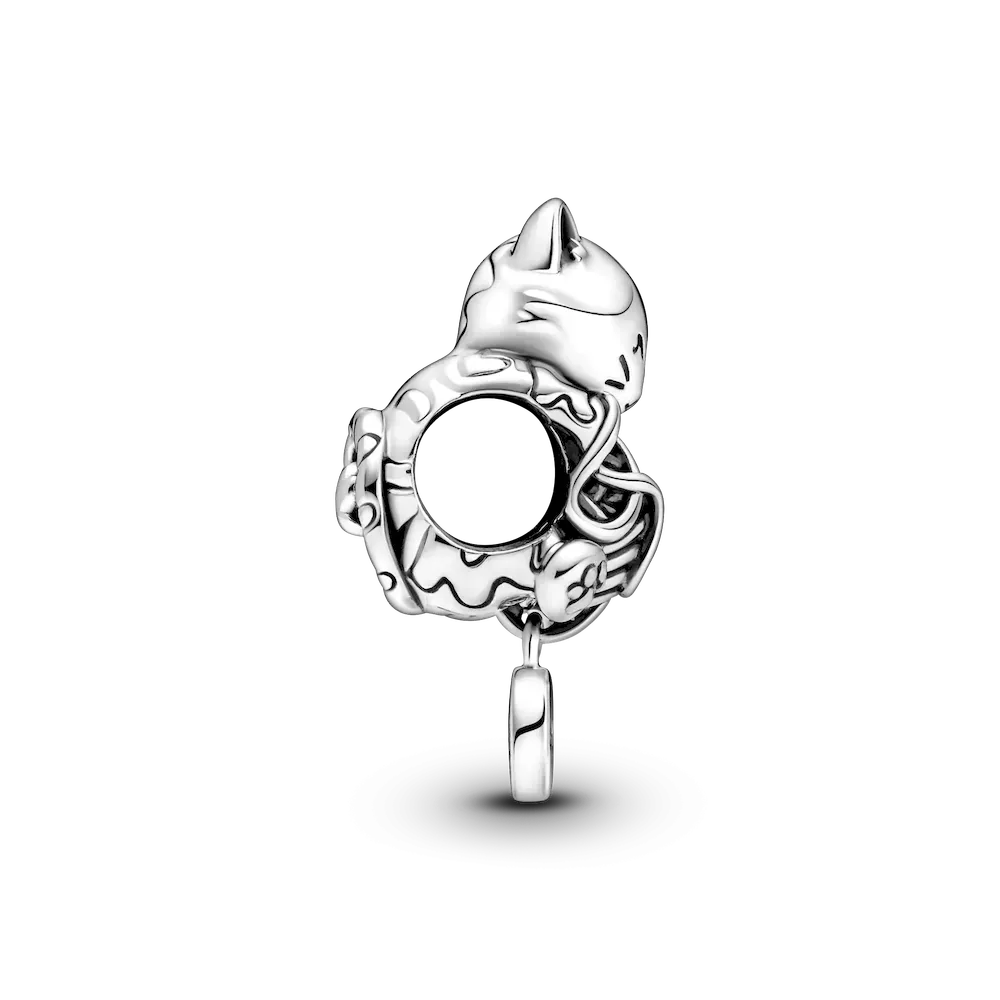 Be a proud cat lover with the Kitten & Yarn Ball Charm. Hand-finished in sterling silver, this charm features a kitten with engraved details and grooved lines to imitate fur patches and raised paw detailing. The kitten holds a yarn ball, which includes a small dangling tag with