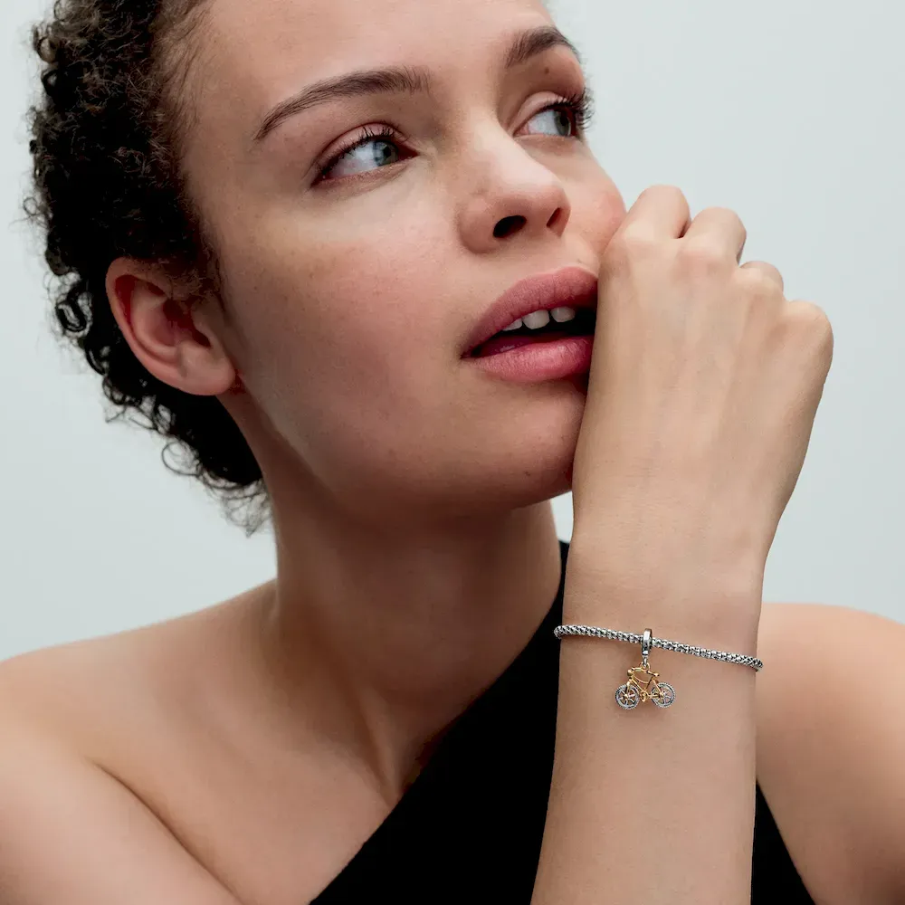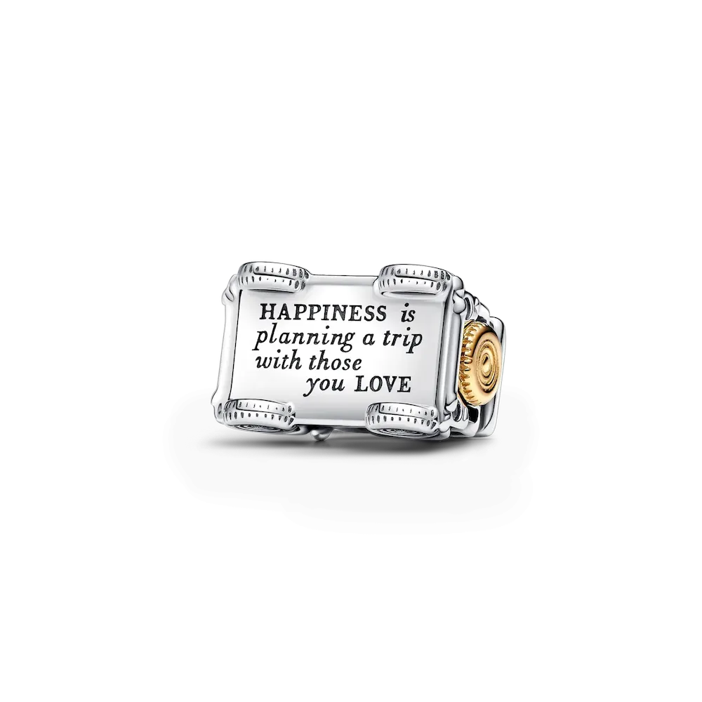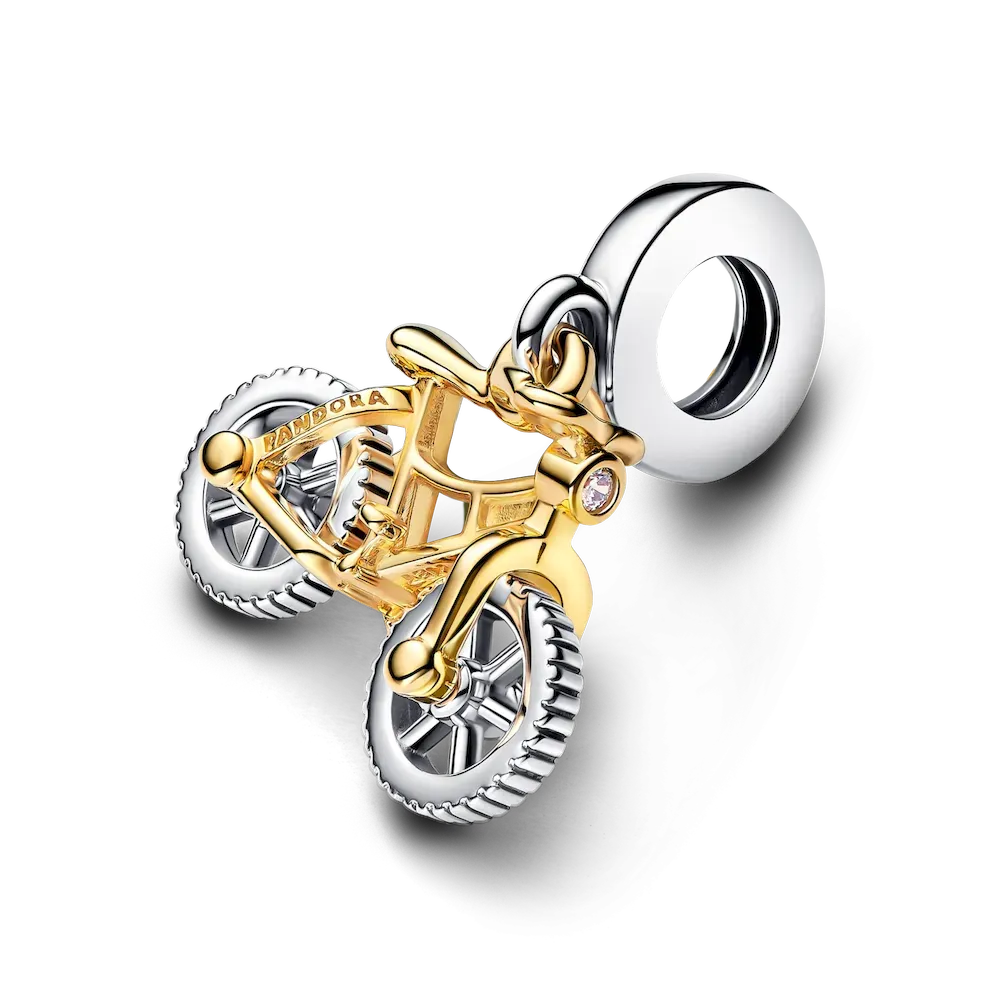 Destination: wanderlust. Channel your adventurous spirit and journey in style with new charms that symbolize the freedom of exploration. The sterling silver Adventure Backpack charm is engraved with “LIFE is for Adventure” and detailed with buckled straps and an airplane patch. Two other charms complete the set, each made of sterling silver and 14k gold plating fused together by a new soldering technique. The Bicycle dangle charm is a reminder to ride through life’s adventures with joy. It has spinning wheels for a sporty touch, and a sparkling headlight of clear cubic zirconia. The Adventure Car charm features a roof cut out with the word “ADVENTURE” while the base of the car is engraved with “HAPPINESS is planning a trip with those you LOVE.” The headlights are clear cubic zirconia stones. Style this trio on keychains, luggage, bracelets or any charm holder that is up for adventure. Make memories. Be love.