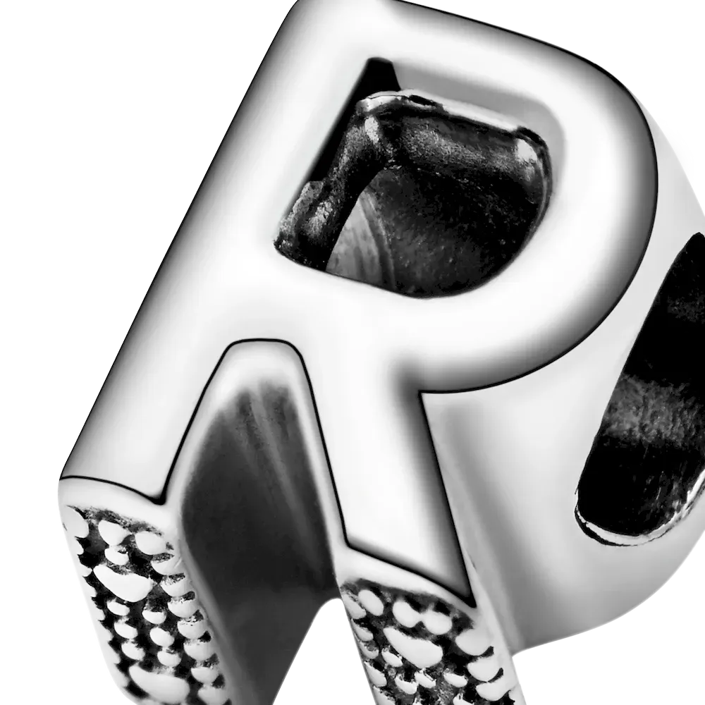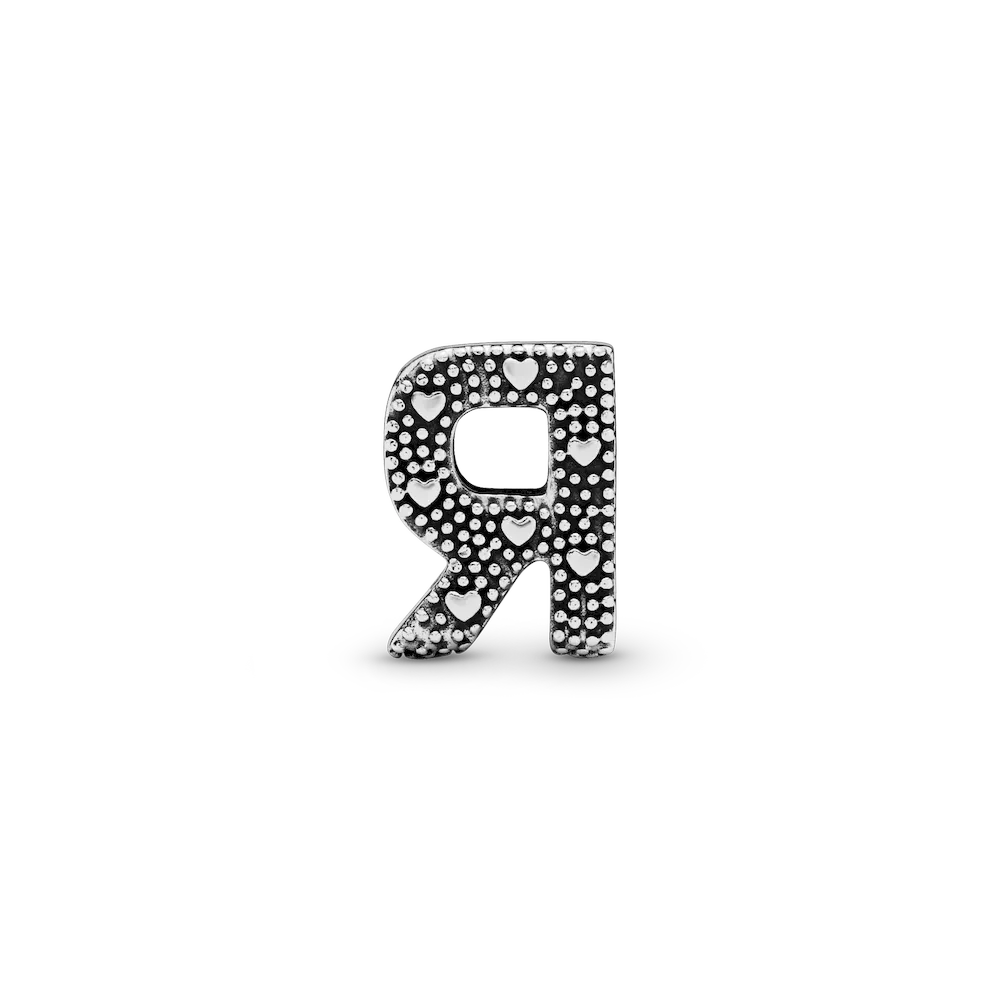 Tell your style story through our letter charms that let you spell out the words that mean the most to you. Monogram your Pandora Moments charm bracelet with important initials or create a personal message with the letter R. The reversible sterling silver charm is polished on the front and feature raised hearts and beads on the back. Add the letter R to your charm collection or gift it to someone that’s got a special connection to the letter.