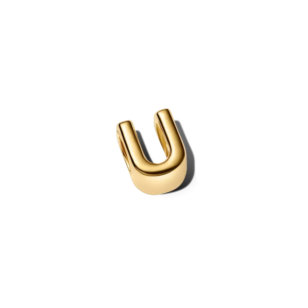 Celebrate your individuality with a customized message, starting with the Letter U Alphabet Charm, featuring a rounded profile and 14k gold-plated metal.