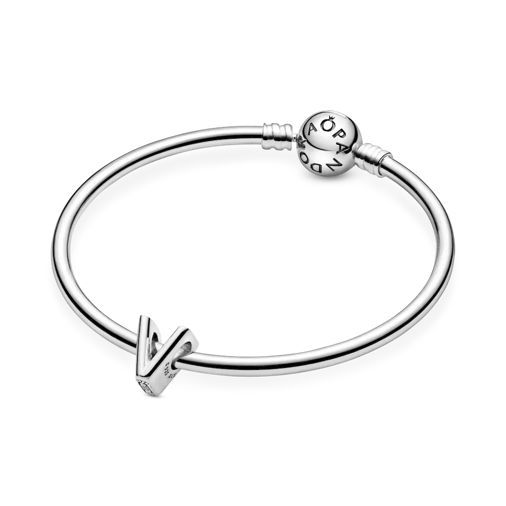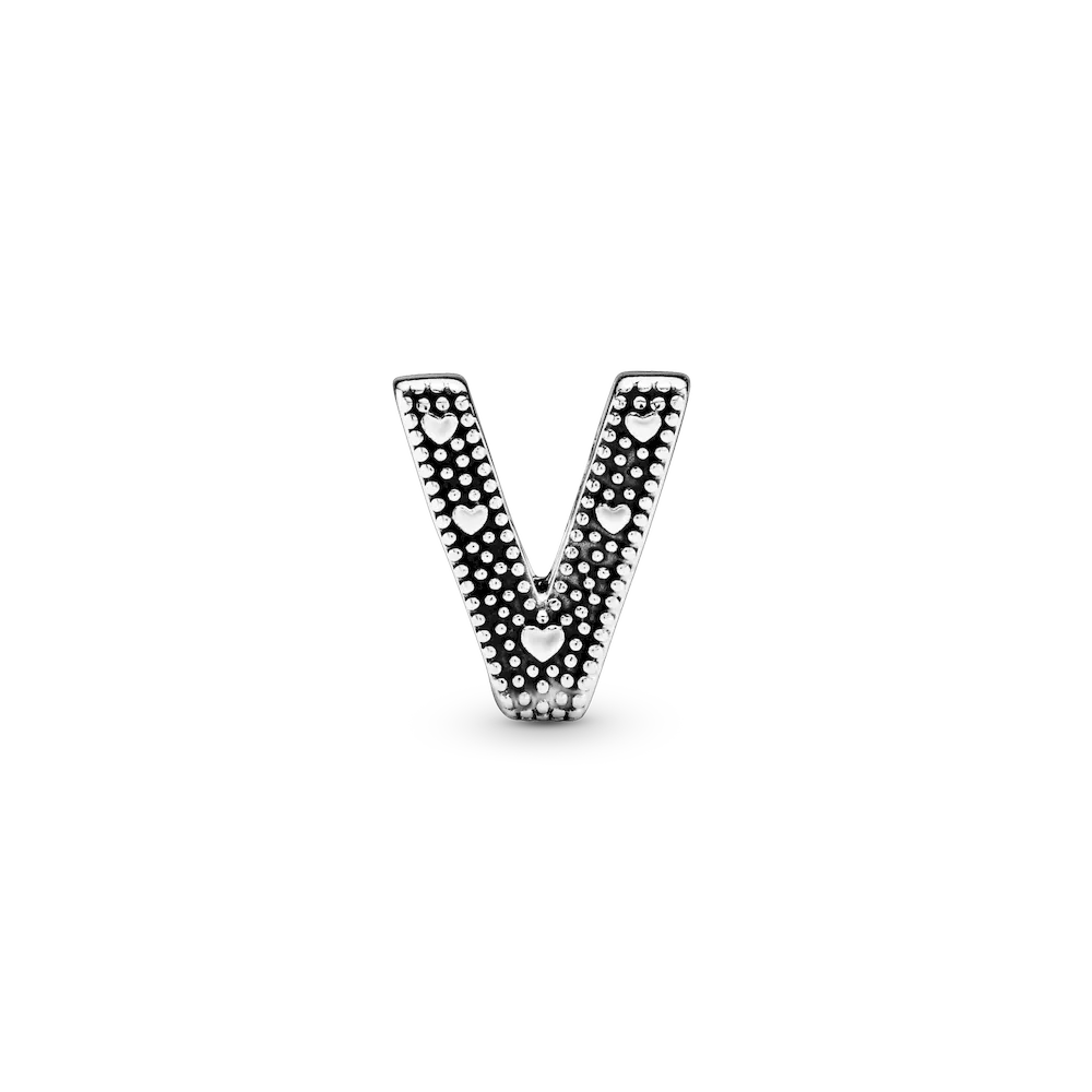 Tell your style story through our letter charms that let you spell out the words that mean the most to you. Monogram your Pandora Moments charm bracelet with important initials or create a personal message with the letter V. The reversible sterling silver charm is polished on the front and feature raised hearts and beads on the back. Add the letter V to your charm collection or gift it to someone that’s got a special connection to the letter.