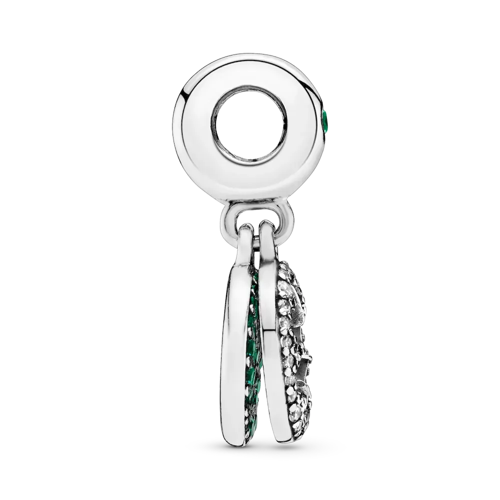 Feel lucky every day with this shimmering good luck charm. Set with clear cubic zirconia and green crystals, it brings meaning to your look and luck to your life. The sterling silver dangle charm is centered with a four-leaf clover. Wear it on your Pandora Moments bracelet as a symbol of your story or gift it to someone special as a lucky charm.