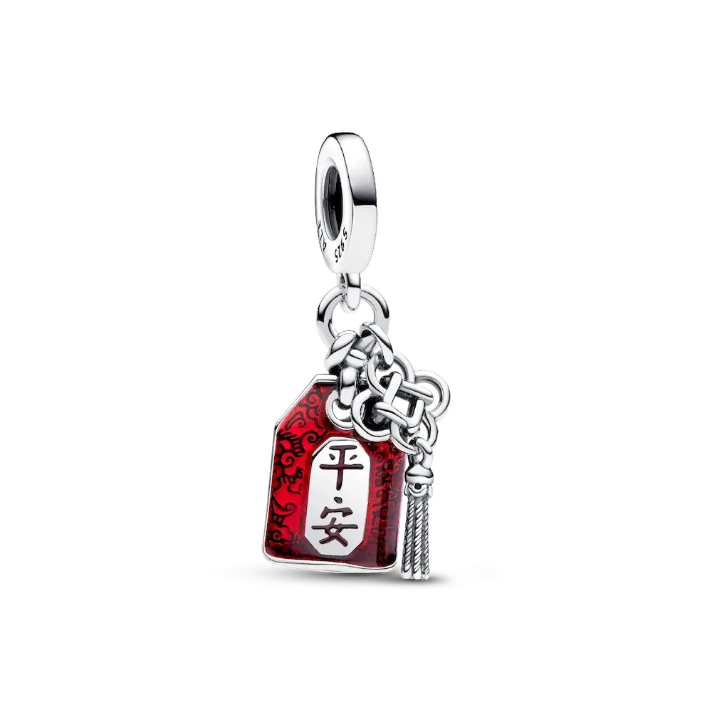 Celebrate with the Lunar New Year Lucky Charm Trio, a collection that brings good fortune, peace, and adventure into the new year. The set includes the Lucky Bag Charm, a sterling silver pouch adorned with red enamel and the Chinese character Fu, symbolising happiness and prosperity. The Lucky Amulet Double Dangle Charm features a red envelope design with auspicious cloud patterns and the word 平安 (ping’an), meaning “peace.” Completing the trio, the Hot Air Balloon Murano Glass Dangle Charm is crafted in sterling silver and features a red Murano glass balloon, symbolising new journeys and inspiration. Perfect for marking the Lunar New Year or sending wishes of good fortune.