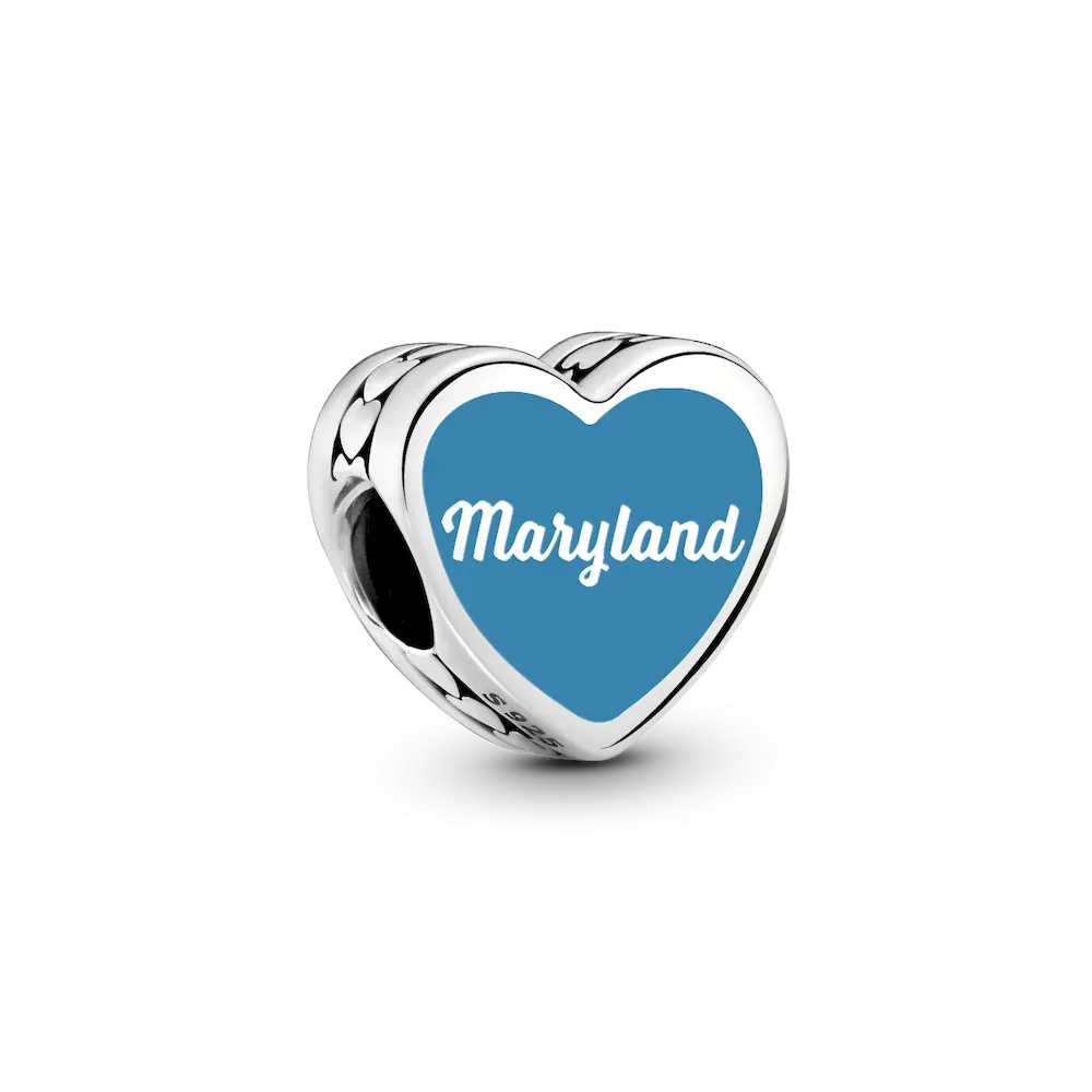 From crab feasts to Chesapeake pride, this sterling silver heart charm is a shining tribute to Maryland.