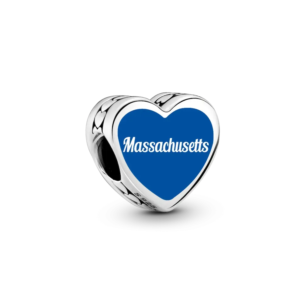 This Massachusetts heart charm captures coastal charm with a boat and skyline scene, perfect for those who carry New England in their heart.