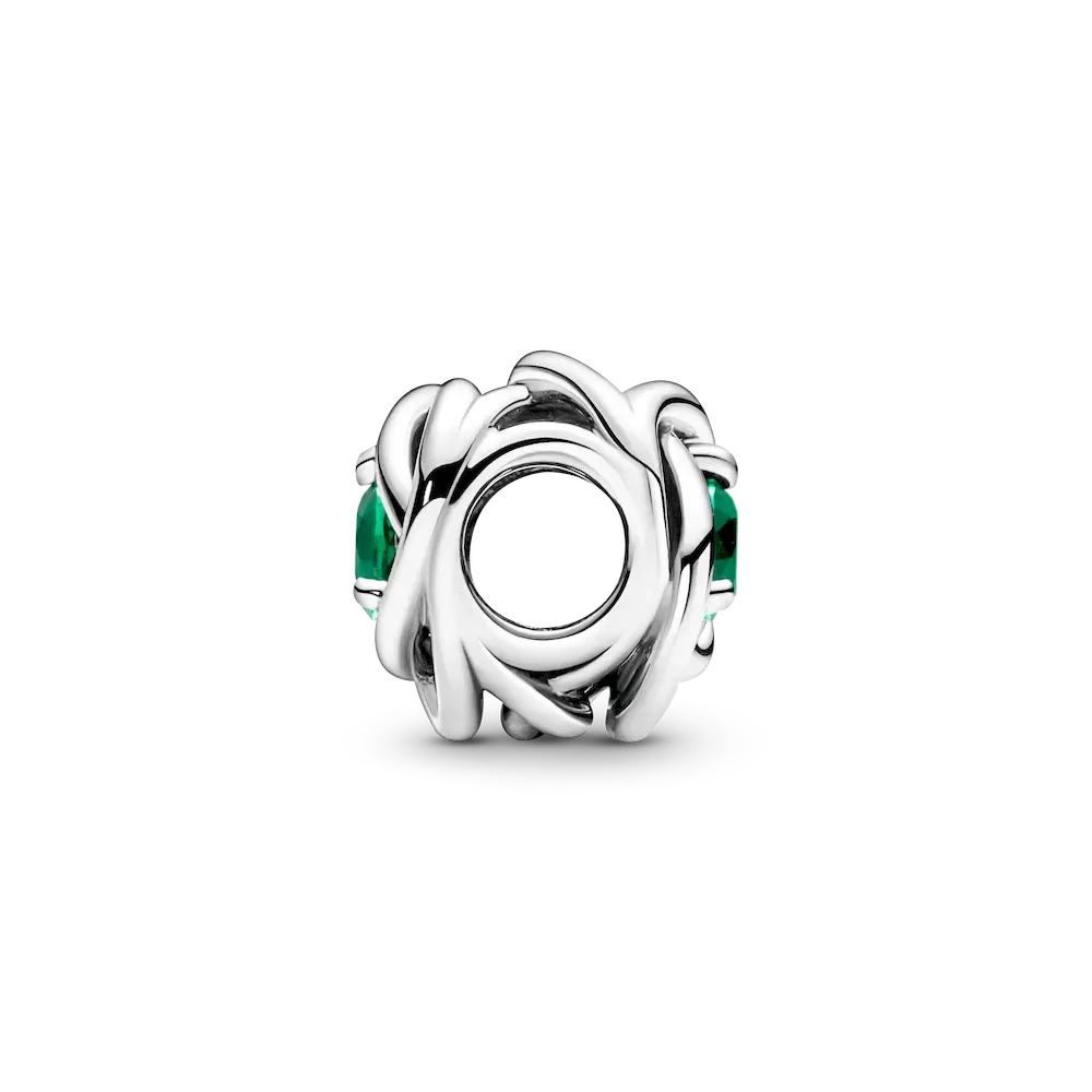 The color green is a symbol of growth and renewal, and makes the perfect hue for this inspiring May Necklace Set. It features a Classic Cable Chain Necklace in sterling silver, a snake-chain patterned Pandora Moments Small O Pendant, and a Green Eternity Circle Charm with openwork infinity braiding design and a lush royal green man-made crystal in the center.
