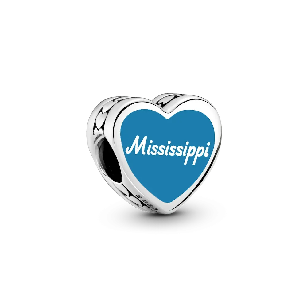 Inspired by river life and Southern charm, this sterling silver heart charm captures the timeless beauty and rhythm of Mississippi.