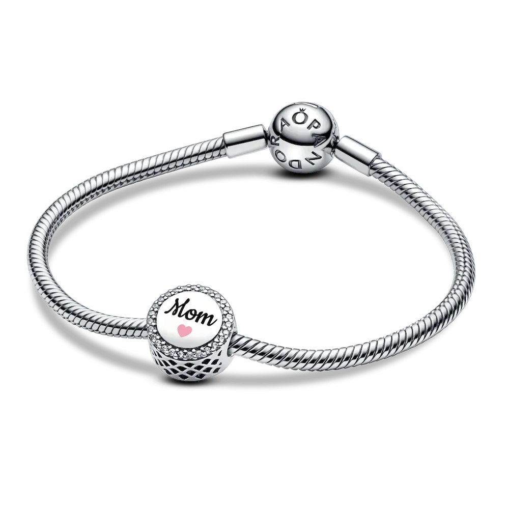 Express your gratitude for Mom with this gorgeous Engravable Mom Charm. The pavé cubic zirconia detail adds brilliance, while the