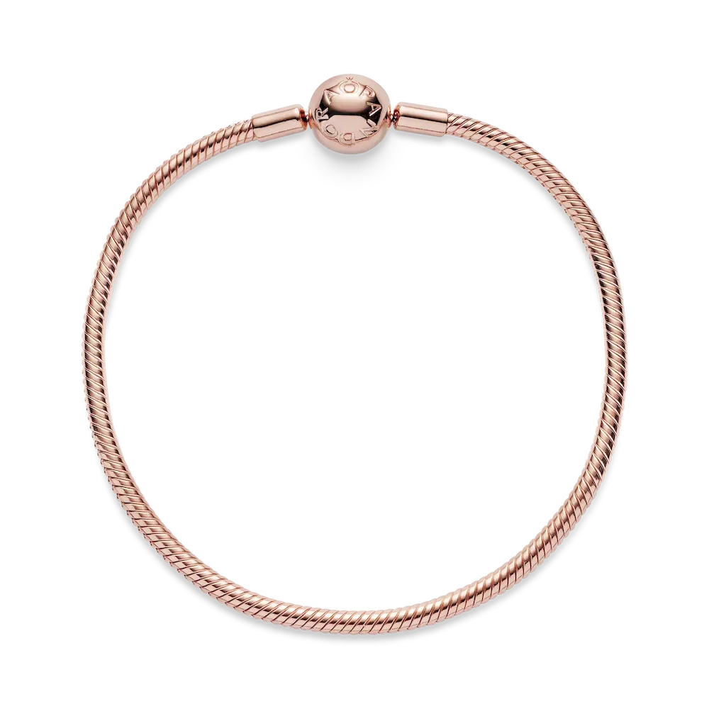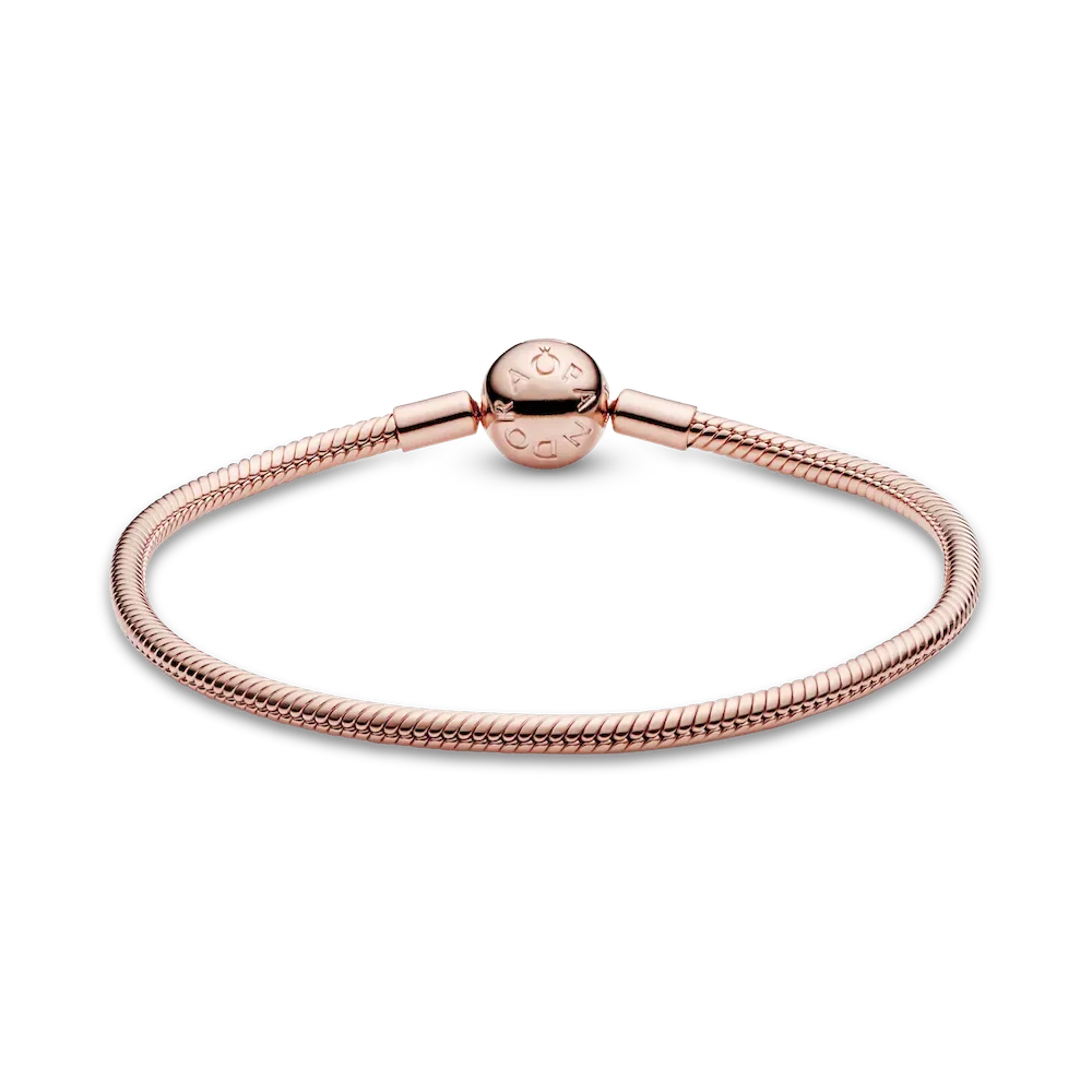 Start your very own Pandora story with this sleek, 14k rose gold-plated Moments Snake Chain Bracelet. The perfect canvas for your creativity, this hand-finished bracelet can be styled in countless ways. Fill it with your desired charms and clips, wear it on its own for a simple, understated look, or stack it with contrasting bracelets for a fun play on textures – the only limit is your imagination!