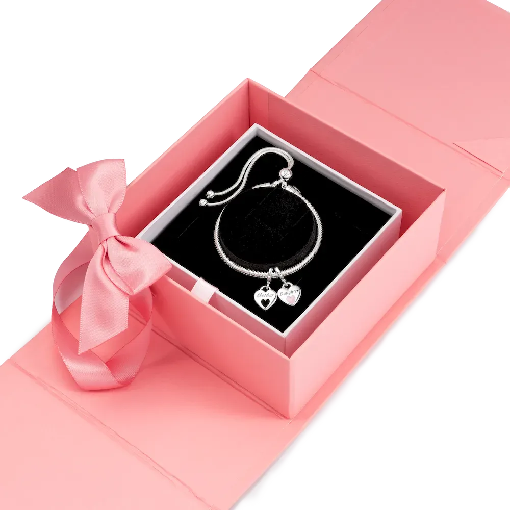 Two hearts, one story. This sterling silver bracelet holds a charm that splits in two. Made to be shared, worn, and cherished across generations.