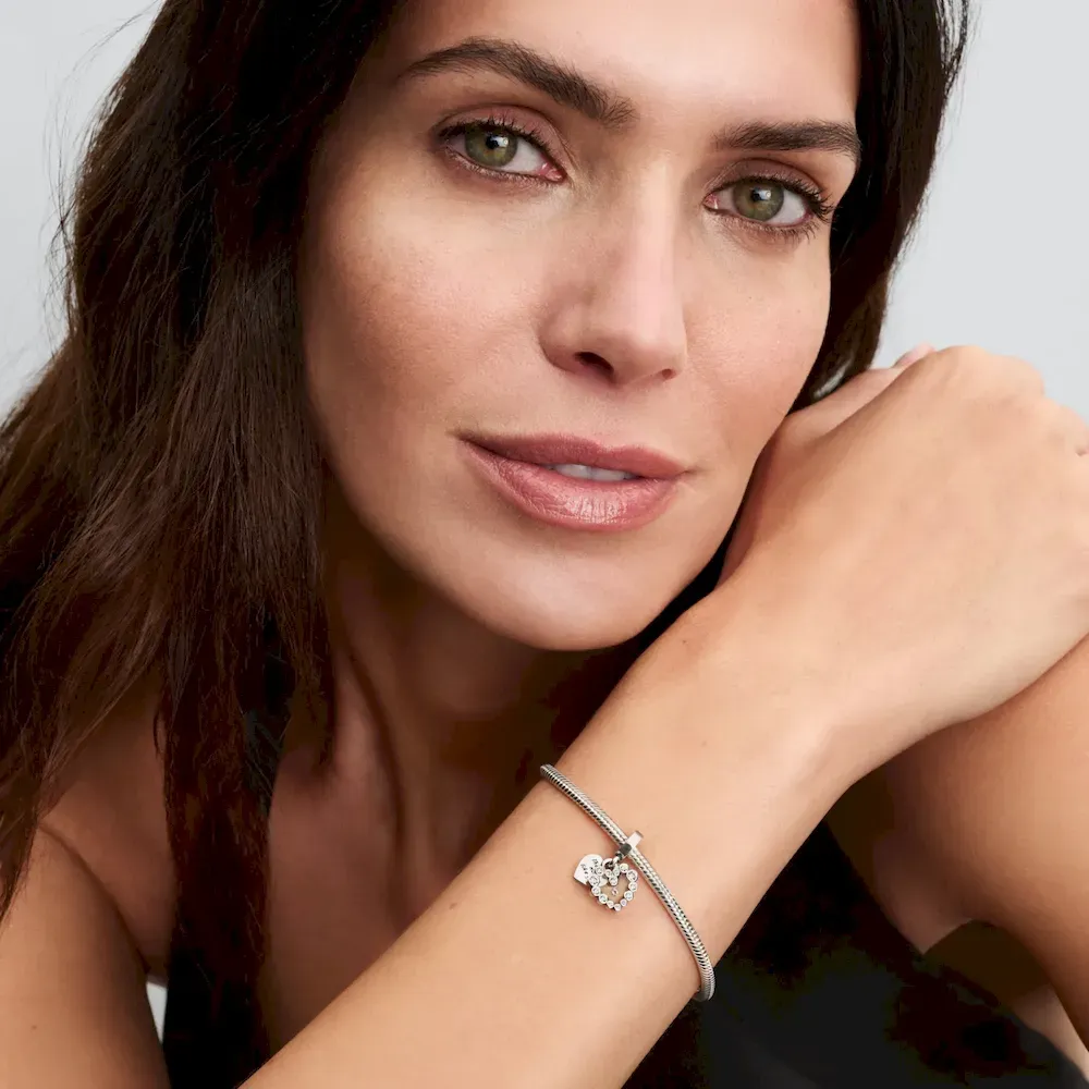 The Mother’s Love Charm Duo symbolizes unconditional love and strength. Featuring a Sparkling Heart Dangle Charm and an Infinity Knot Charm, this set honors the bond that endures through all of life’s moments.