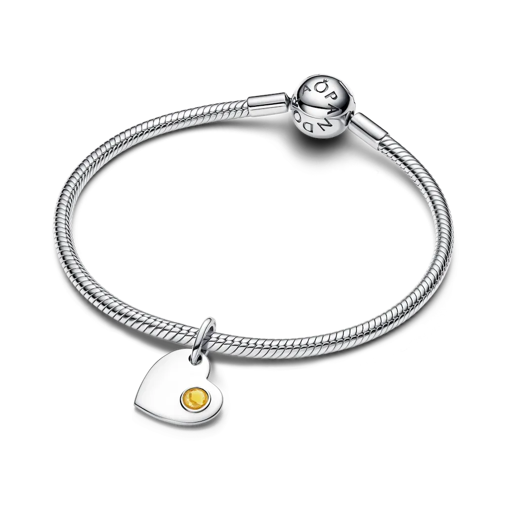 Wear your heart on your sleeve, literally. This sterling silver dangle charm pairs a honey-coloured man-made crystal with a smooth back — a symbol of love and personal meaning.