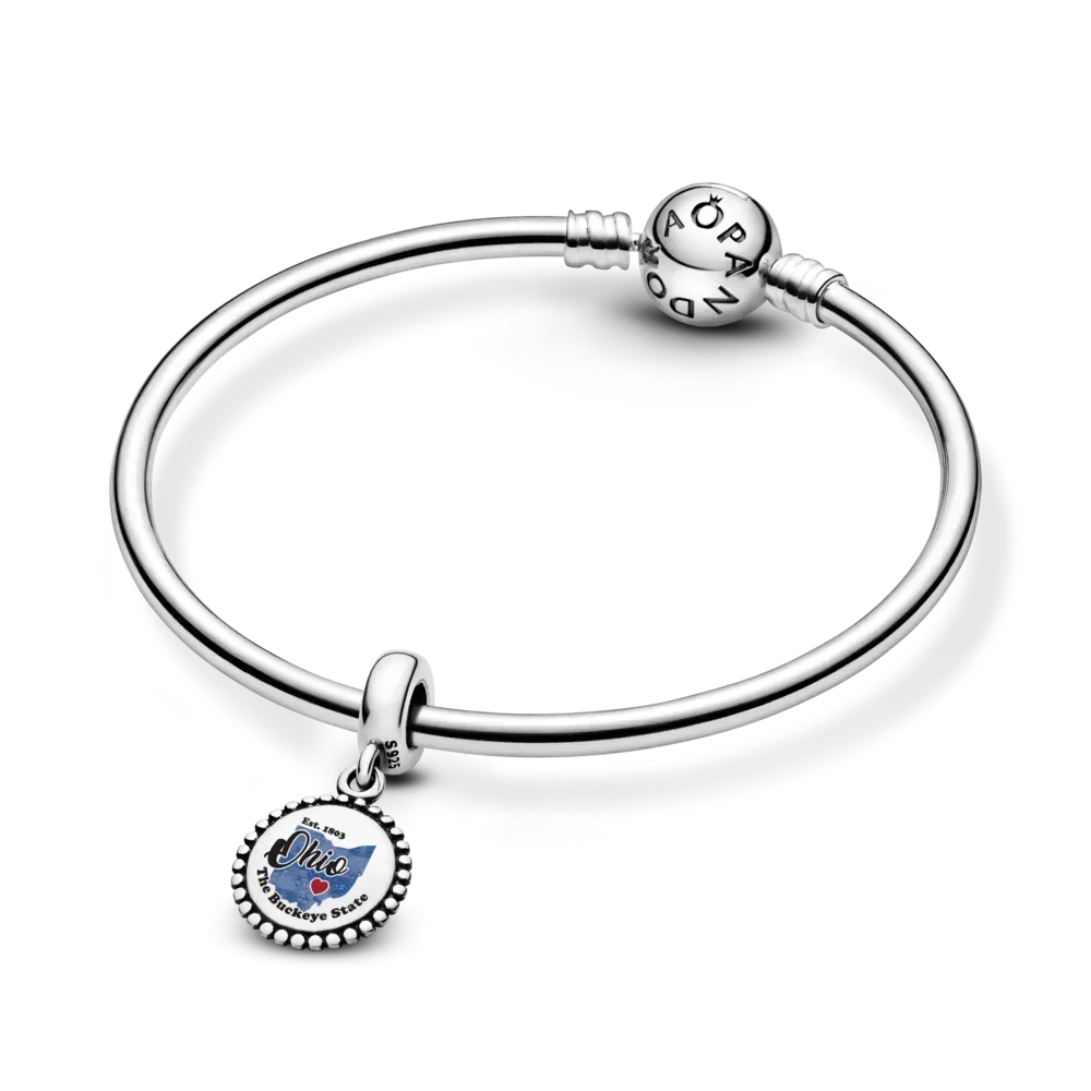 A symbol of the beloved Buckeye State, this sterling silver dangle charm features a state-shaped silhouette in glossy blue enamel, accented with a small red heart, and “Ohio” beautifully scripted across. Perfect for fans who’s pride runs deep, whether you’re shouting