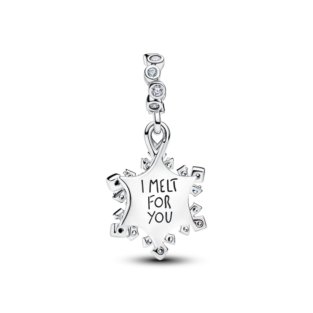 Channel winter wonder in sterling silver. This charm pairs a sparkling snowflake with a shimmering star featuring aurora lab-grown opal resin on one side and the engraving ‘I MELT FOR YOU’ on the other.