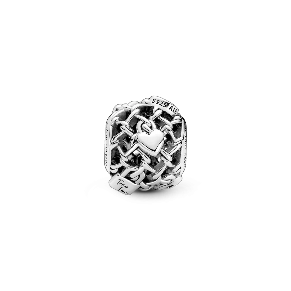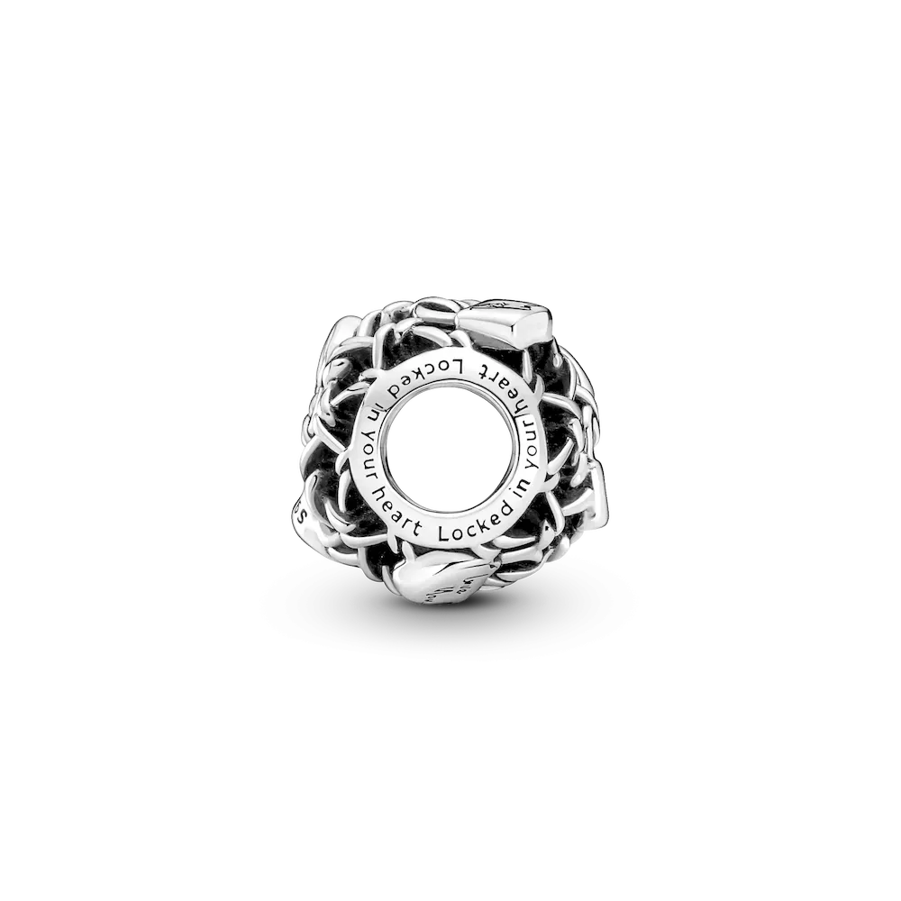 Are new charms the key to your heart? Unlock new styling with this Openwork Chain Link Padlock Charm. Hand-finished in sterling silver in an intricate cut out pattern, the charm features little padlock motifs inspired by the love locks placed on bridges around the world by happy couples. Engraved with the messages