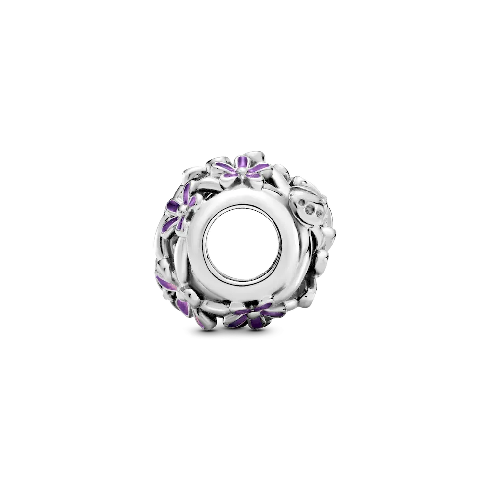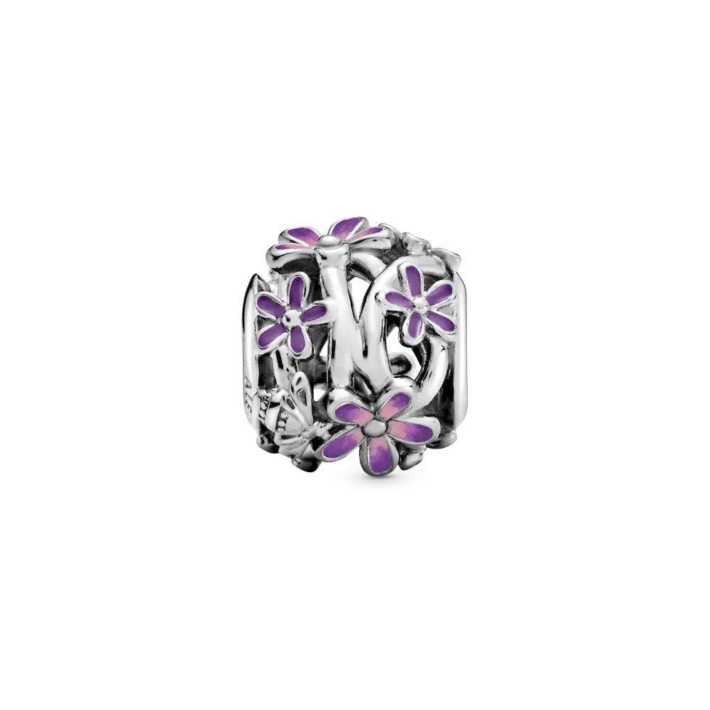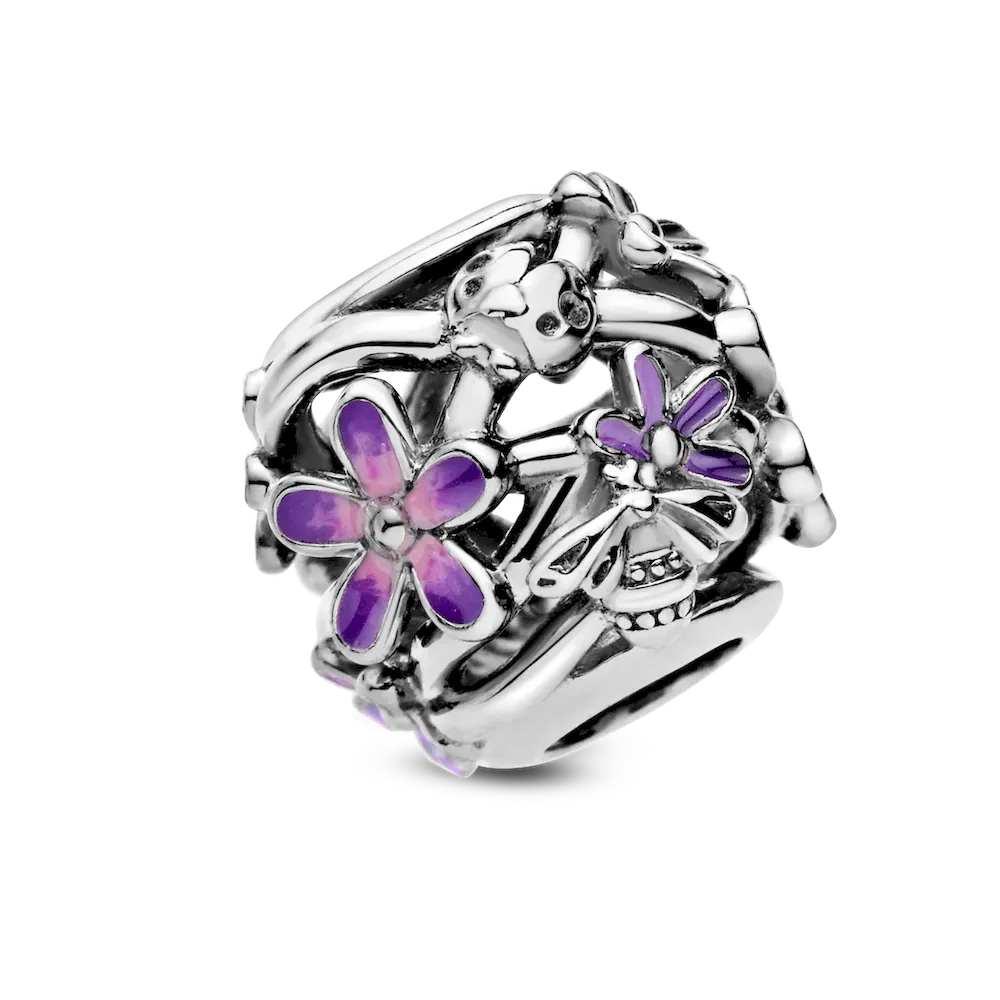 Brighten up your look with the Openwork Purple Daisy Charm. Hand-finished in sterling silver, this intricate openwork flower charm features delicate daisies covered in hand-applied lavender and pink enamel, as well as polished ladybird and bee details. A celebration of spring and new beginnings, this dainty charm represents hope, freedom, community and diversity. Wear it to tap into spring’s energy and sweetness every day, no matter what the season.