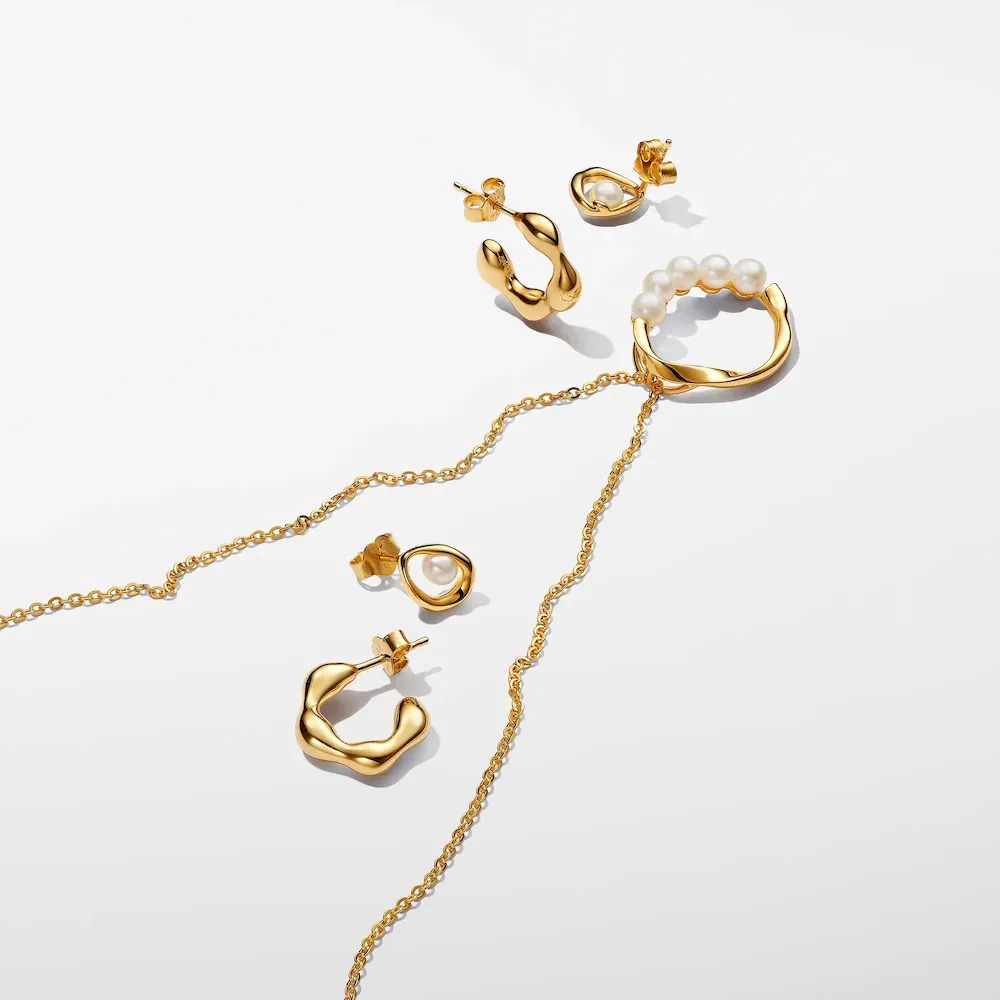 Step into your element with the Organically Shaped Oval & Treated Freshwater Cultured Pearl Stud Earrings. Each earring features one treated freshwater cultured pearl tucked inside an organic-looking 14k gold-plated oval with varying thickness. Each treated freshwater cultured pearl is unique and can vary in size and color; normal wear and tear may occur with this material. Our freshwater cultured pearls are treated with bleaching and luster enhancement.