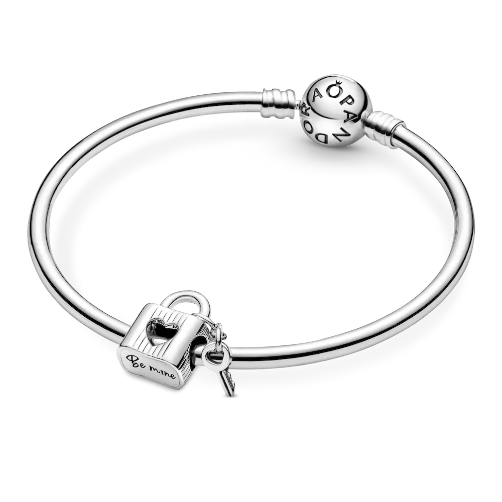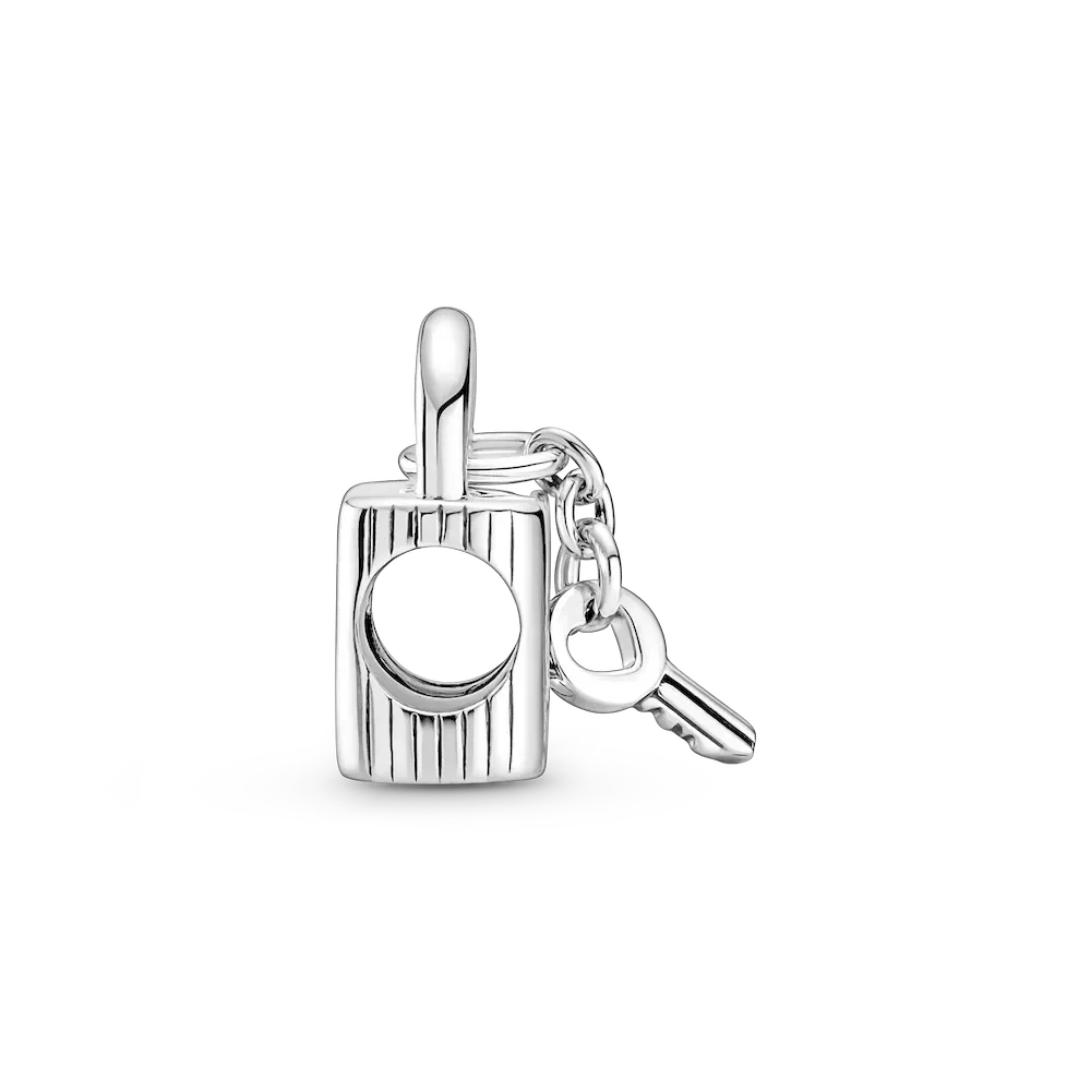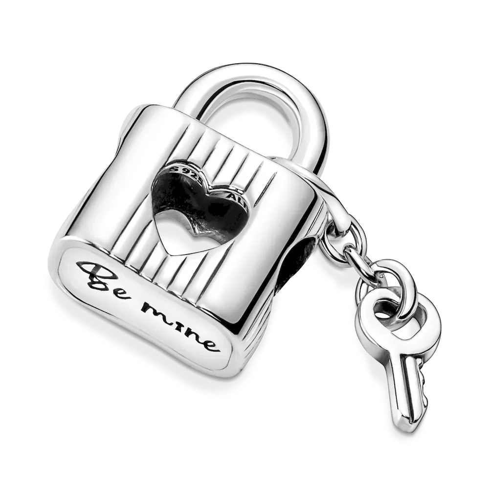 Whoever holds the key to your heart, celebrate your everlasting love with this meaningful Padlock & Heart Key Charm. Hand-finished in sterling silver, this special charm features the engraving