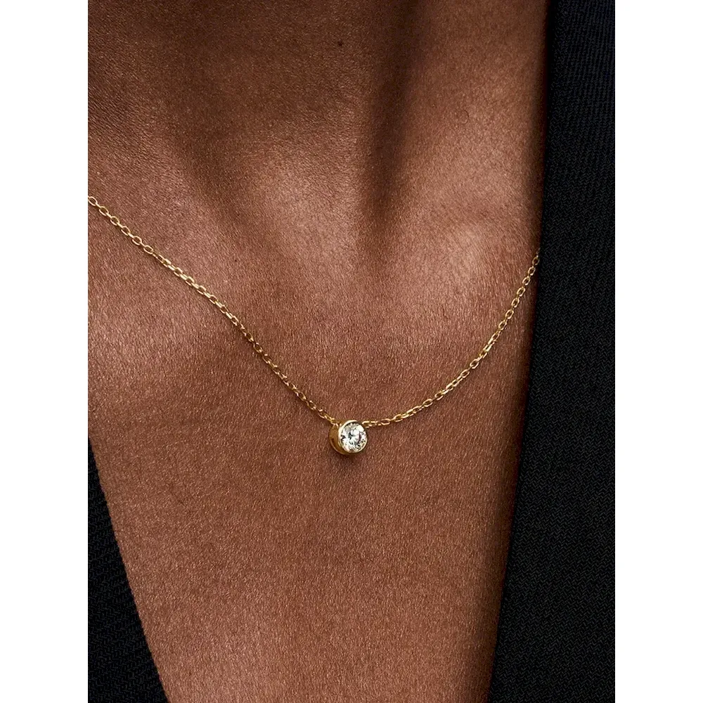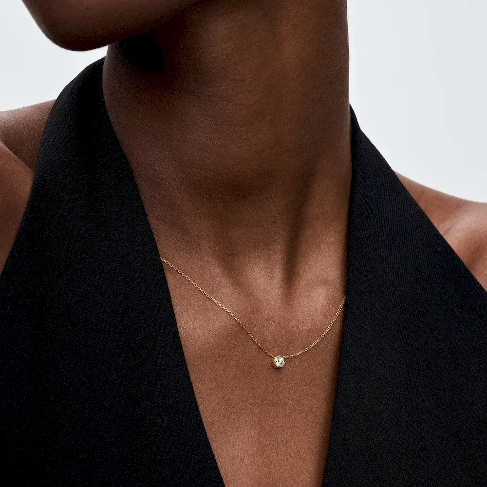 Meet your new essential necklace. The Pandora Era Bezel 14k Gold Lab-grown Diamond Pendant Necklace features a 0.25 carat lab-grown diamond pendant in a 14k gold bezel setting with a sleek, contemporary aesthetic. Cut-outs on the back and sides of the bezel setting let in the light for ultimate sparkle. The pendant moves freely along a 14k gold diamond-cut cable chain, adjustable to two lengths. A classic that brilliantly rises above time, it’s the perfect elevated staple for your everyday looks. Each Pandora Lab-grown diamond is treated with a post-growth color enhancement called annealing.