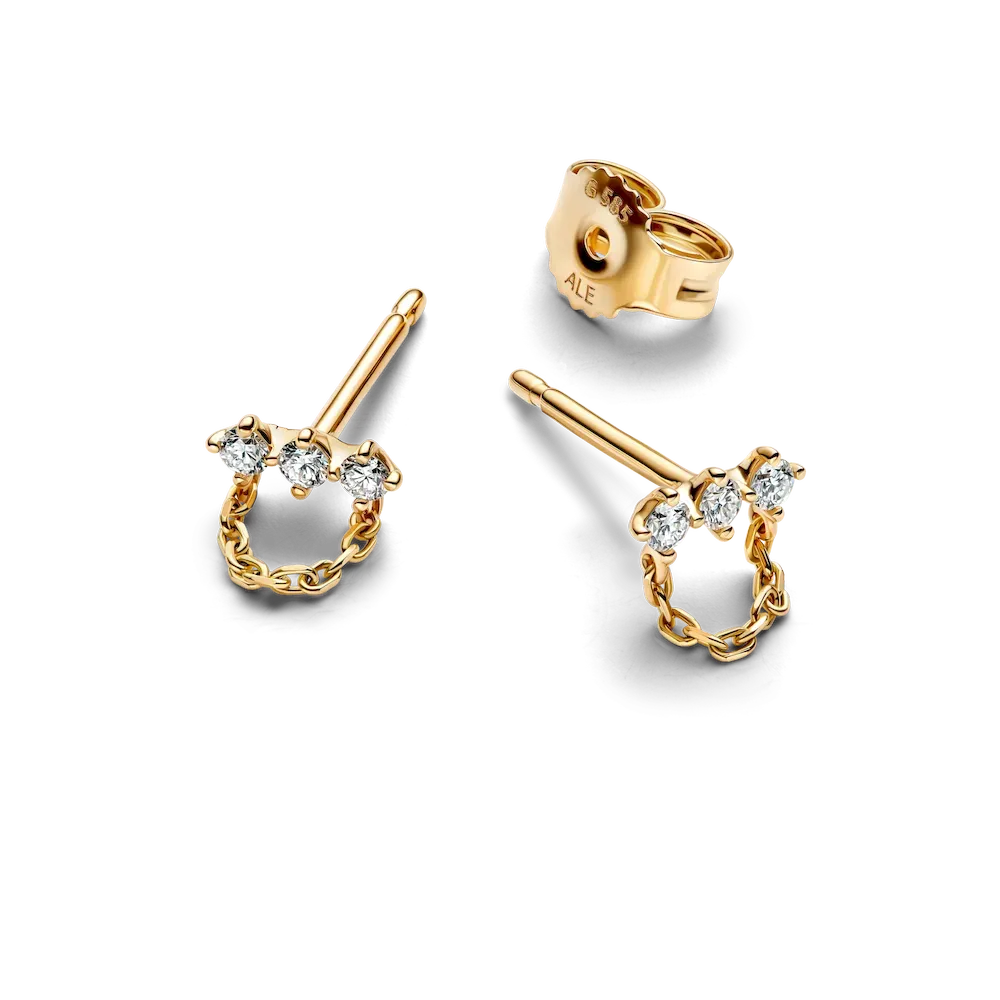 Embrace elegance with our Pandora Era Lab-Grown Diamond Trio Chain Stud Earrings. Each featuring three lab-grown diamonds with 0.13ct TW, these earrings are prong-set in 14k gold. With a hanging cable chain element, they’re a great choice for everyday wear or as a thoughtful gift. Enjoy a classic design with a modern twist.