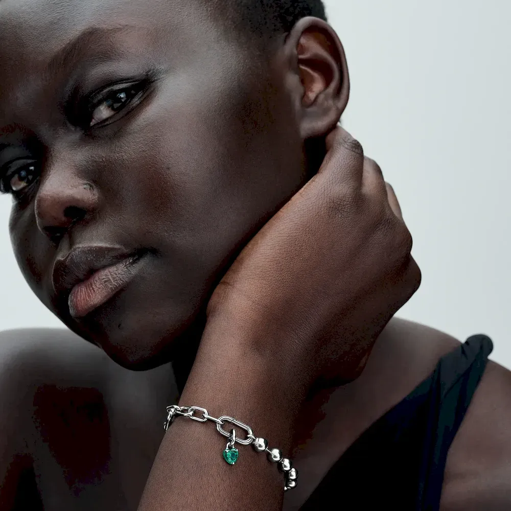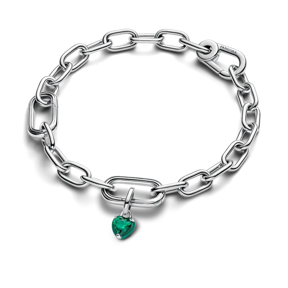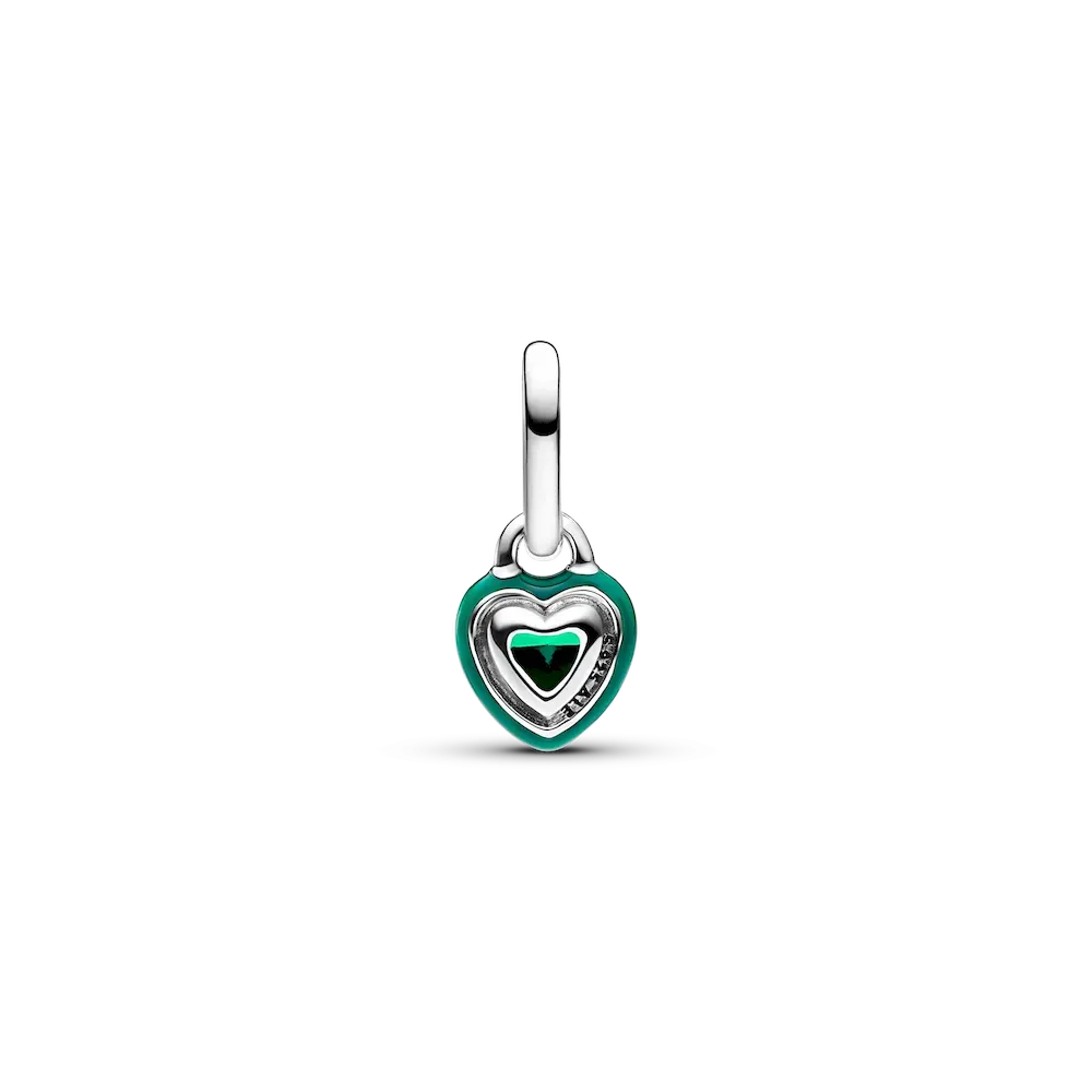 Love has no limits when you wear the Pandora ME Green Chakra Heart Mini Dangle Charm. This sterling silver heart charm features green enamel and a green heart-shaped man-made crystal at center. The reverse side features grooved lines and cut-out detailing. A reminder that wild hearts can’t be broken, this mini dangle charm brings a depth to your look, symbolizing that love – for yourself and others – always wins. Compatible with Pandora ME and Pandora Moments.