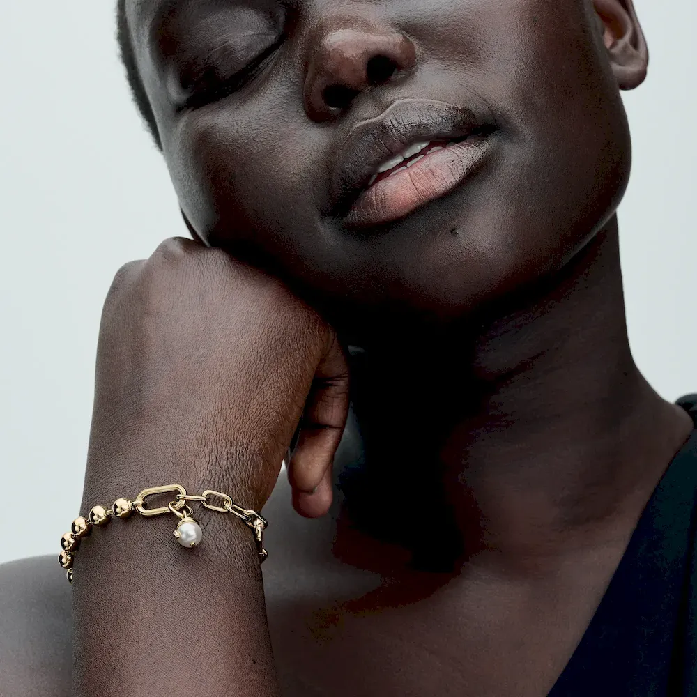 When it comes to a life well lived, more is definitely more. Embrace a maximalist aesthetic by fully loading your charm holder with these eye-catching totems of summer. The set of three 14k gold-plated mini dangle charms features diminutive designs of iconic treasures of the sea. The luminous Shark Tooth and coiling Snake Pearlescent charms are made from bio resin man-made mother of pearl. The sparkling Anchor charm is encrusted not in barnacles, but cubic zirconia stone. Show your depth. Be Love.