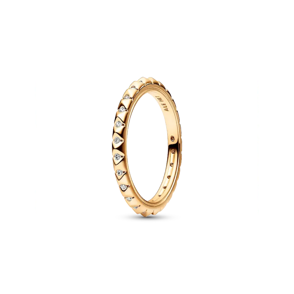 Stud and stack your style with the Pandora ME Pyramids Ring Set. Pairing two essential 14k gold-plated rings in one must-have combination, this set features one pyramid-studded eternity band with sparkling stones and one statement stacking ring with grooved edges. The stacking ring can be styled with mini dangle charms through a Pandora ME openable link, allowing you to further up the ante on your unique stacking style and one-of-a-kind look.