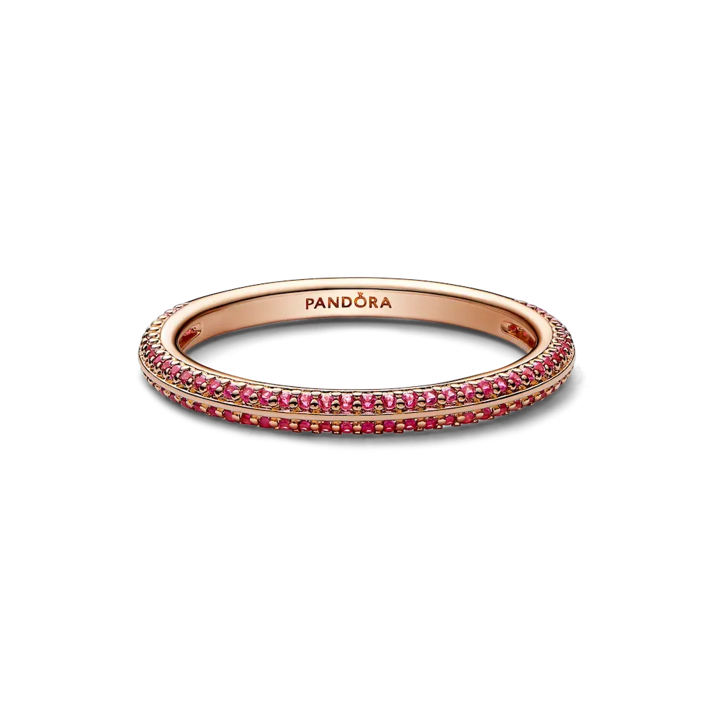 Remix your ring stacks with this Pandora ME Red PavĂ© Ring, ready to be styled into fresh metal and color combinations that suit your mood every day. This 14k rose gold-plated ring has been pavĂ© set with 86 micro bead-set synthetic rubies for a for a vibrant look. Embrace the ultimate level of personalization by connecting this statement stacking ring to your other faves using the Pandora ME Three-ring Openable Link, then add up to three mini dangles that express who you are. Mix and match colors and stones next to each other to give your stacks a glow up. Ready to re-style your ring stack? Follow a few simple steps to make sure your two favorite mini dangles detach with ease, so you can remix your look over and over. Whatever ring stack you’re rocking, ensure that the Pandora ME Three-ring Openable Link’s openable part faces upwards and slide only one of the rings to the opposite side. Next, take off any mini dangles through the opening, one at a time, before removing the other ring. You’re now ready to change it all up again!