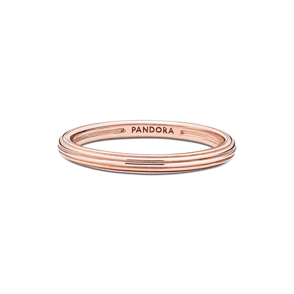 Remix your ring stacks with this Pandora ME Ring, ready to be styled into fresh metal and color combinations that suit your mood every day. This 14k rose gold-plated ring features grooved lines that add instant dimension to its surface. Embrace the ultimate level of personalization by connecting this statement stacking ring to your other faves with the Pandora ME Two-ring or Three-ring Openable Links, then add up to three mini dangle charms that express who you are. Mix and match colors and stones next to each other to give your stacks a glow up. Ready to re-style your double ring stack? Follow a few simple steps to make sure your two favorite pieces detach with ease, so you can remix your look over and over. Whatever ring pair you’re rocking, ensure that the Two-ring openable link part faces upwards and slide only one of the two rings to the opposite side. Next, take off any mini dangle charms through the opening, one at a time, before removing the other ring. You’re now ready to change it all up again! Please note this item is only compatible with Pandora ME jewelry and will not fit our other collections.