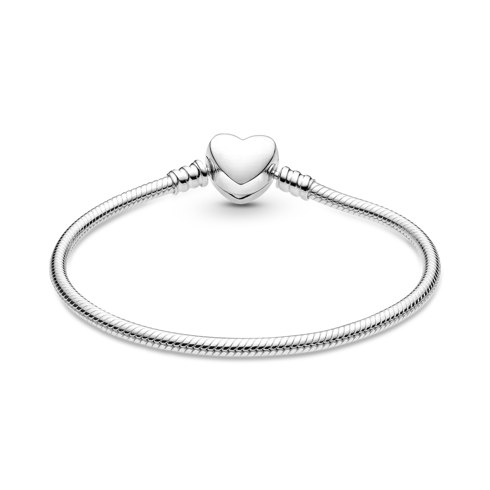 Express your love with the Pandora Moments Engravable Heart Clasp Snake Chain Bracelet. Hand-finished in sterling silver with threaded ends to keep charms safely secured, this is the first Pandora Moments bracelet to feature an engravable clasp. The heart-shaped clasp is flat and polished on both the back and front to allow for engraving, with the Pandora logo featuring on the side. Gift this piece to someone special, complete with a message that comes from the heart.