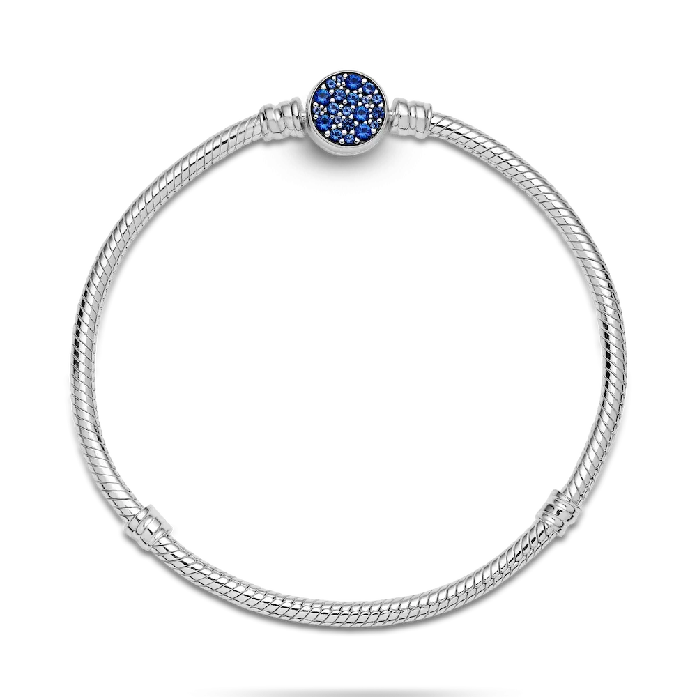 Pandora Moments Sparkling Blue Disc Clasp Snake Chain Bracelet