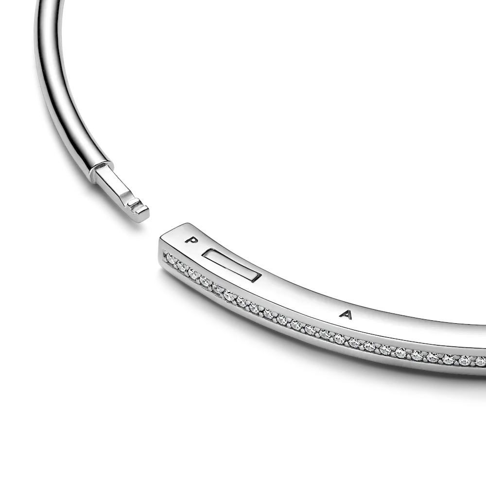 Elevate your outfit with the Pandora Signature I-D Pavé Bangle. Crafted in sterling silver, this much-loved design features an architectural square-and-round profile with a channel of pavé for subtle sparkle. Stack with other Pandora Signature I-D bangles to create your own iconic look.