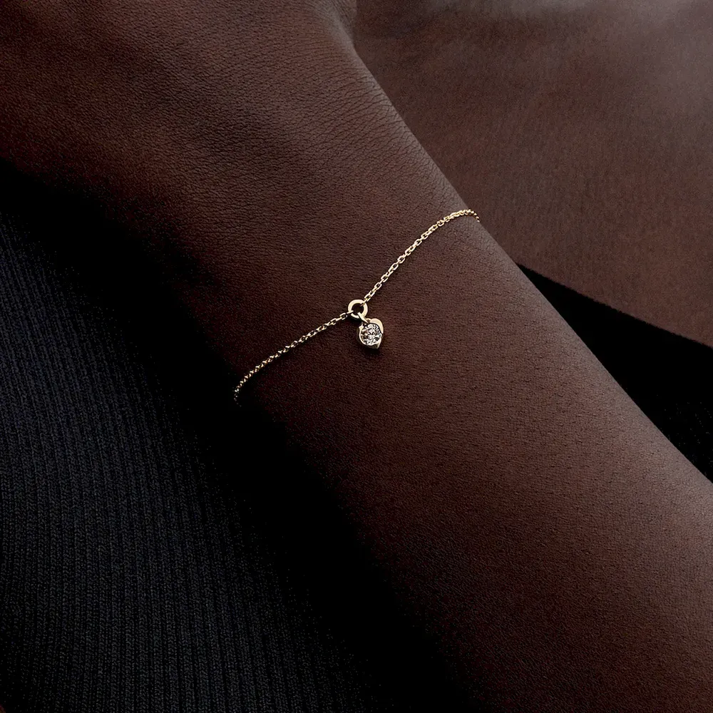 Feel the love with the Pandora Talisman 14k Gold Lab-grown Diamond Heart Chain Bracelet. This 14k gold bracelet features a fixed pendant in the center, with a unique setting that creates a heart motif embracing a 0.25 carat lab-grown diamond. On the back of the stone, a heart-shaped cut-out echoes the shape of the setting and lets the light shine through to maximize sparkle. A slider with silicone inside allows you to adjust the bracelet for the perfect fit. A universal symbol of love, the heart shape makes this lab-grown diamond bracelet the perfect gift to represent a special connection – or an affirmation of the love you have for yourself.