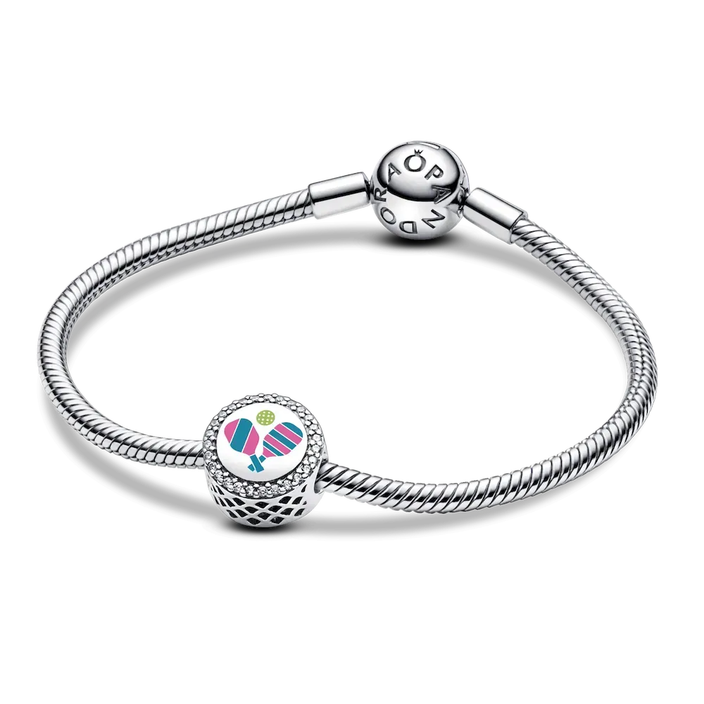 Serve up sparkle with this pickleball charm, crafted in sterling silver, ringed with cubic zirconias, and engravable on the back for a personal touch.