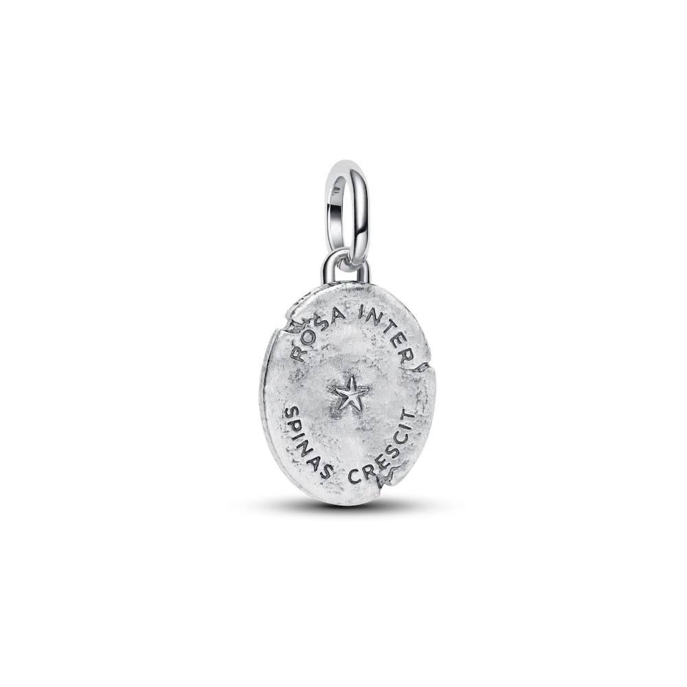 Growth takes time. Wear a reminder of how far you’ve come. This mixed metal medallion features a blooming rose and the Latin engraving ‘ROSA INTER SPINAS CRESCIT’ — a reminder that beauty can rise, even among thorns.