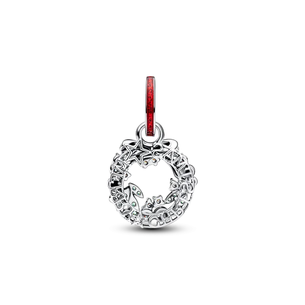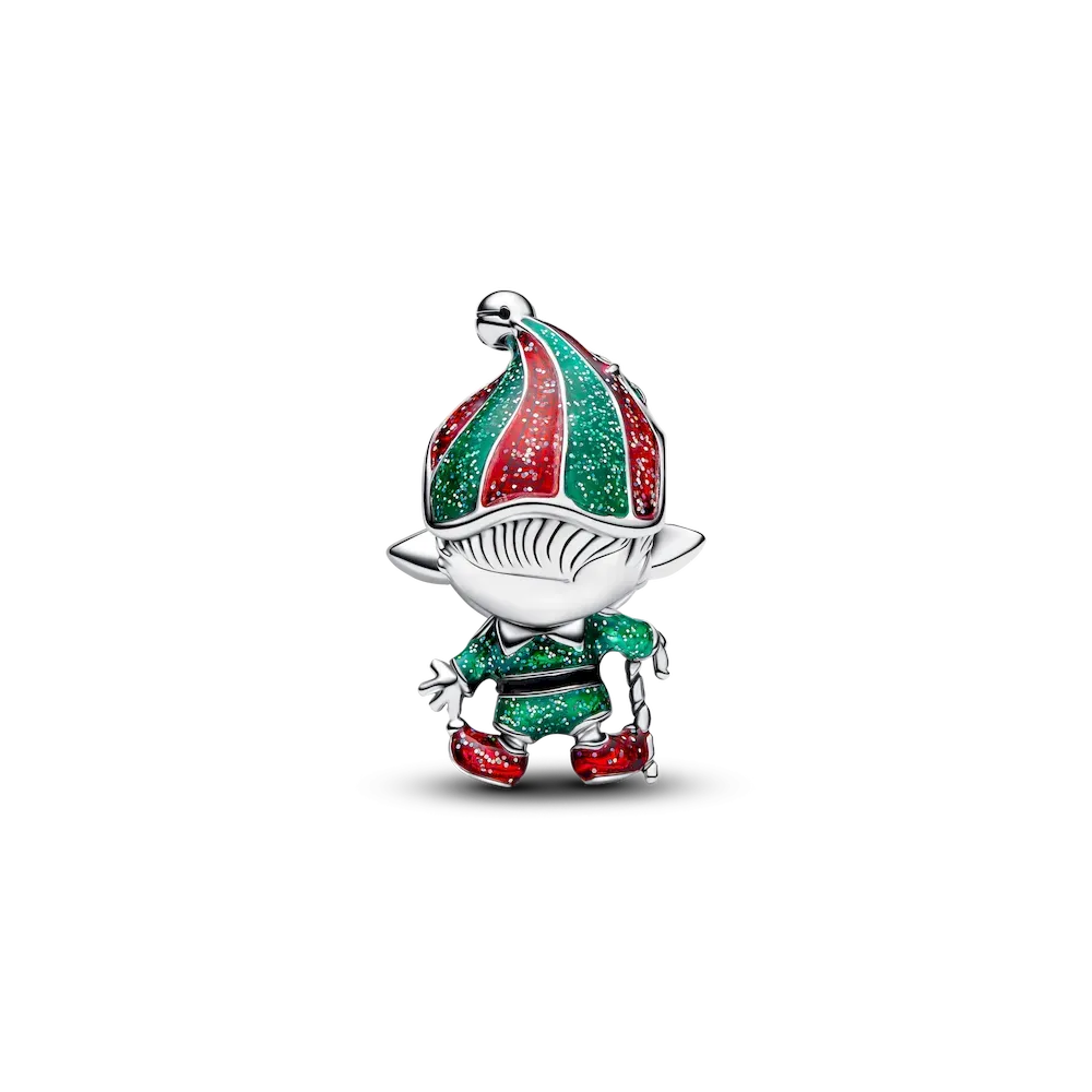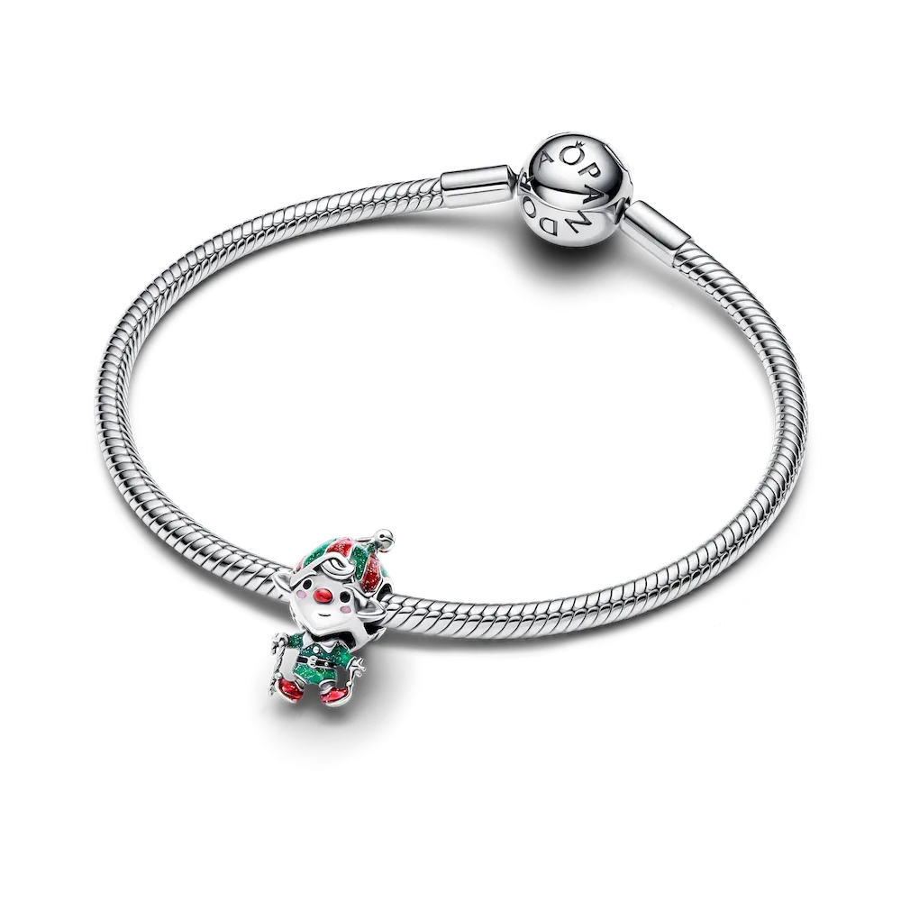 Channel the spirit of the season with a festive charm trio. This set features three sterling silver charms inspired by the holidays – a moveable elf, candy cane and holiday wreath dressed in green man-made crystals.