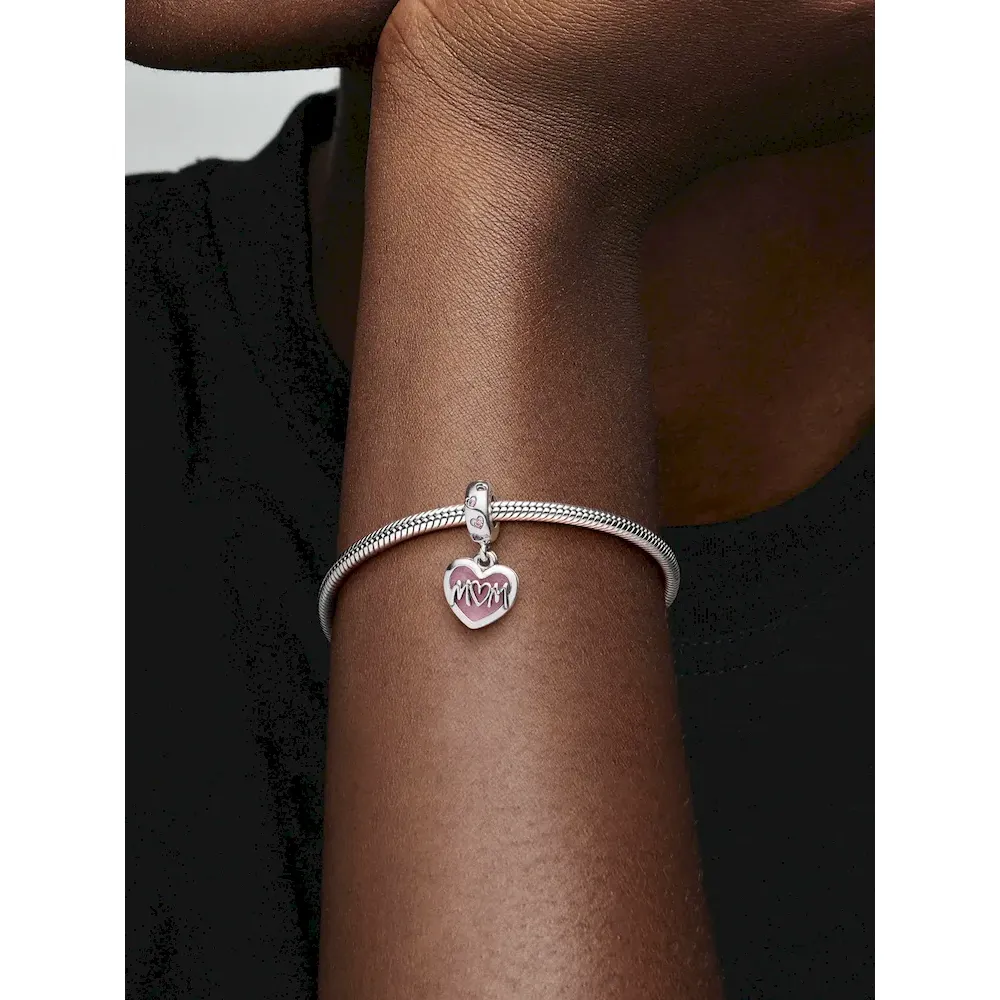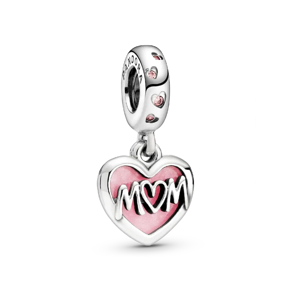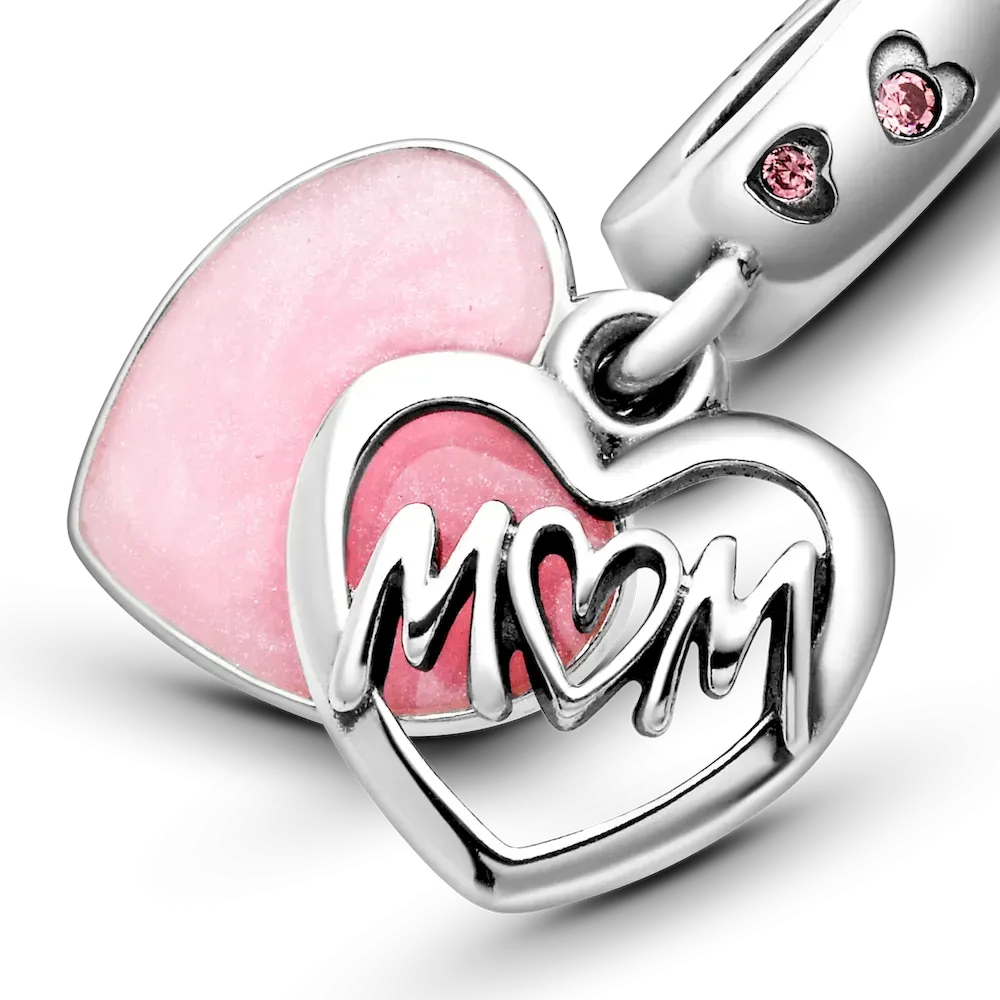Express your love for Mom with our stunning necklace set! Adorned with a delicate pink enamel split dangle, this piece adds a touch of color to any ensemble. The front disk features an intricate