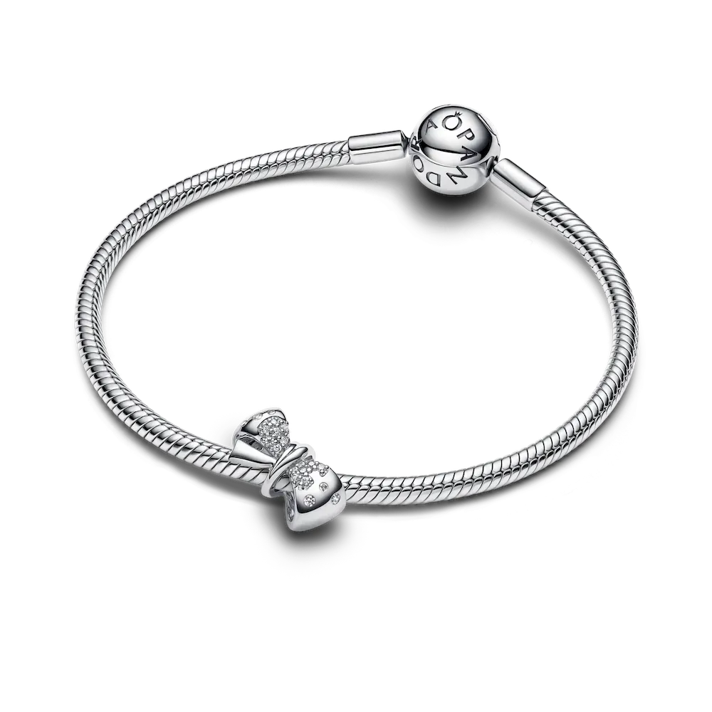 A timeless blend of elegance and sparkle, the Sparkling Bow Bracelet Set is the perfect addition to your jewelry collection. Featuring the sleek Moments Snake Chain Bracelet in sterling silver and the Sparkling Bow Charm, this set adds a touch of sophistication to any look. Wear it solo for a minimal, chic statement, or stack it with your favorite pieces for a layered effect. Love it so much you need more than one? Grab an extra set for matching friendship bracelets with your bestie or double up for your own signature style!