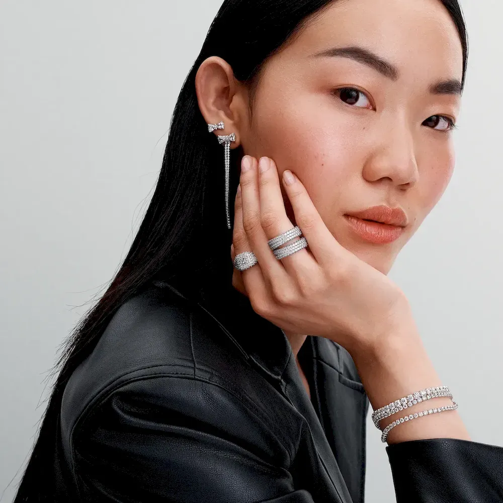 Our reimagined classic tennis bracelet is crafted from sterling silver and features a sparkling row of 34 prong-set round brilliant-cut cubic zirconia. Designed with layering in mind, this is the ultimate piece to add scale and depth to your stacks with its larger stone size. Wear yours as a sparkling statement all season and beyond, or wrap it up as a glittering surprise for the one you love.