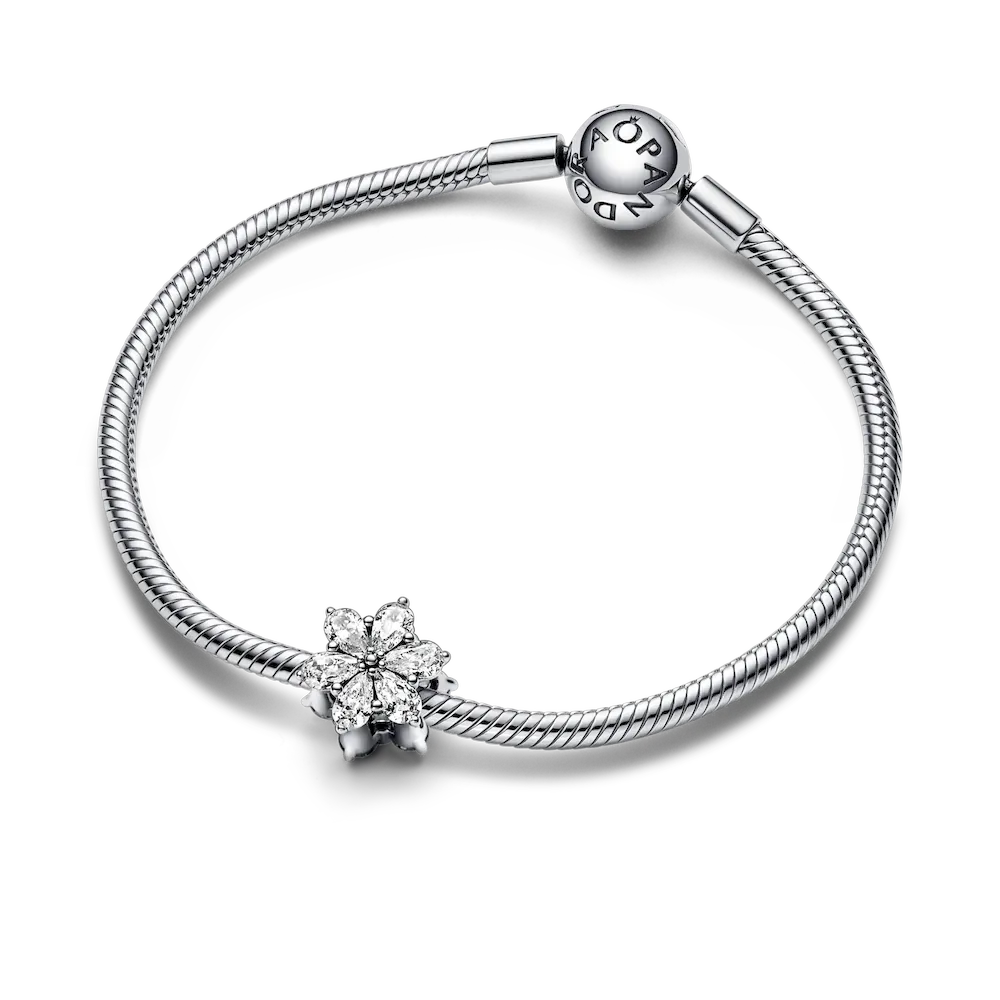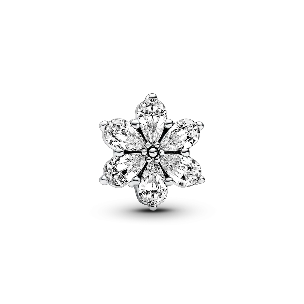 Take inspiration from the beautiful shapes of nature with the Sparkling Herbarium Cluster Charm. Inspired by pressed flowers and leaves, this hand-finished charm features a cluster of pear-shaped clear cubic zirconia stones on each side, creating an elegant, nature-inspired shape. A cluster of microbeads at the centre of the stones creates the finishing touch. Style it on your favorite bracelet or charm holder as an everlasting reminder of the beauty of nature.