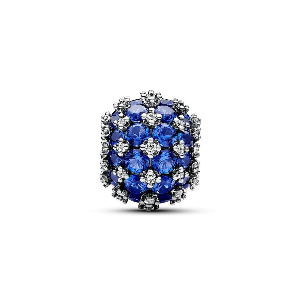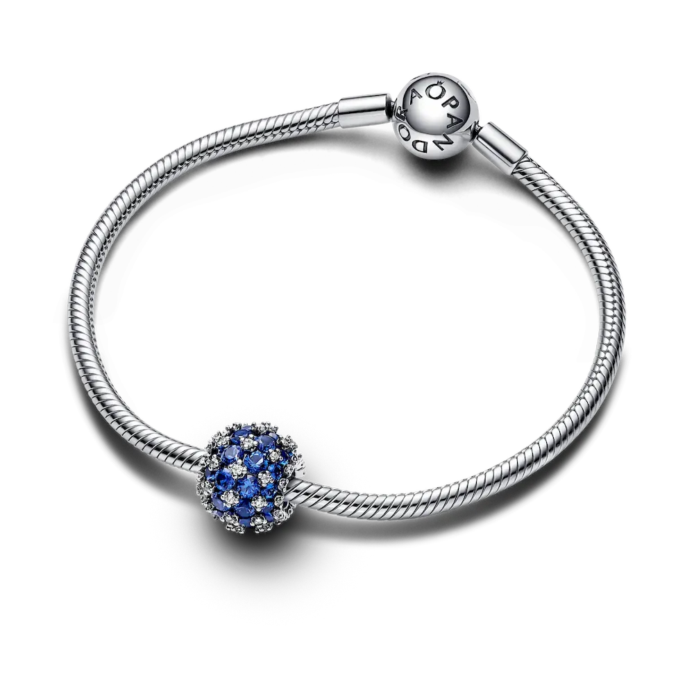 The Sparkling Pavé Round Blue Charm is a bold addition to your collection of sterling silver charms. This sparkling pavé charm is set with precisely 88 stones. Why? Because the number 88 is thought to signify achievement, progress and success, and resembles an infinity sign. This blue man-made crystal and clear cubic zirconia charm is a sparkling reminder of eternal possibility. Our classic Sparkling Pavé Round Charm has been updated in a bold, blue hue, making it the ultimate piece for a solo style statement, or as a partner to your everyday favorites.