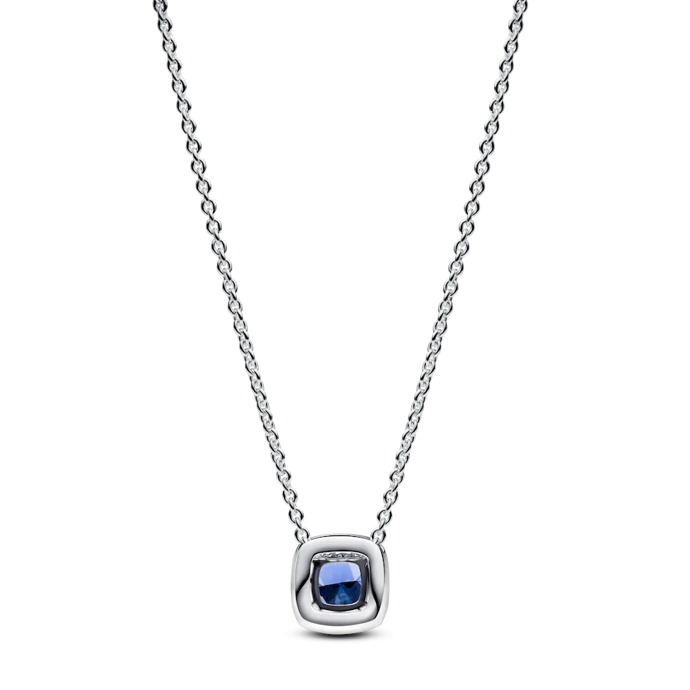 Sparkling Square Blue Halo Pendant Necklace