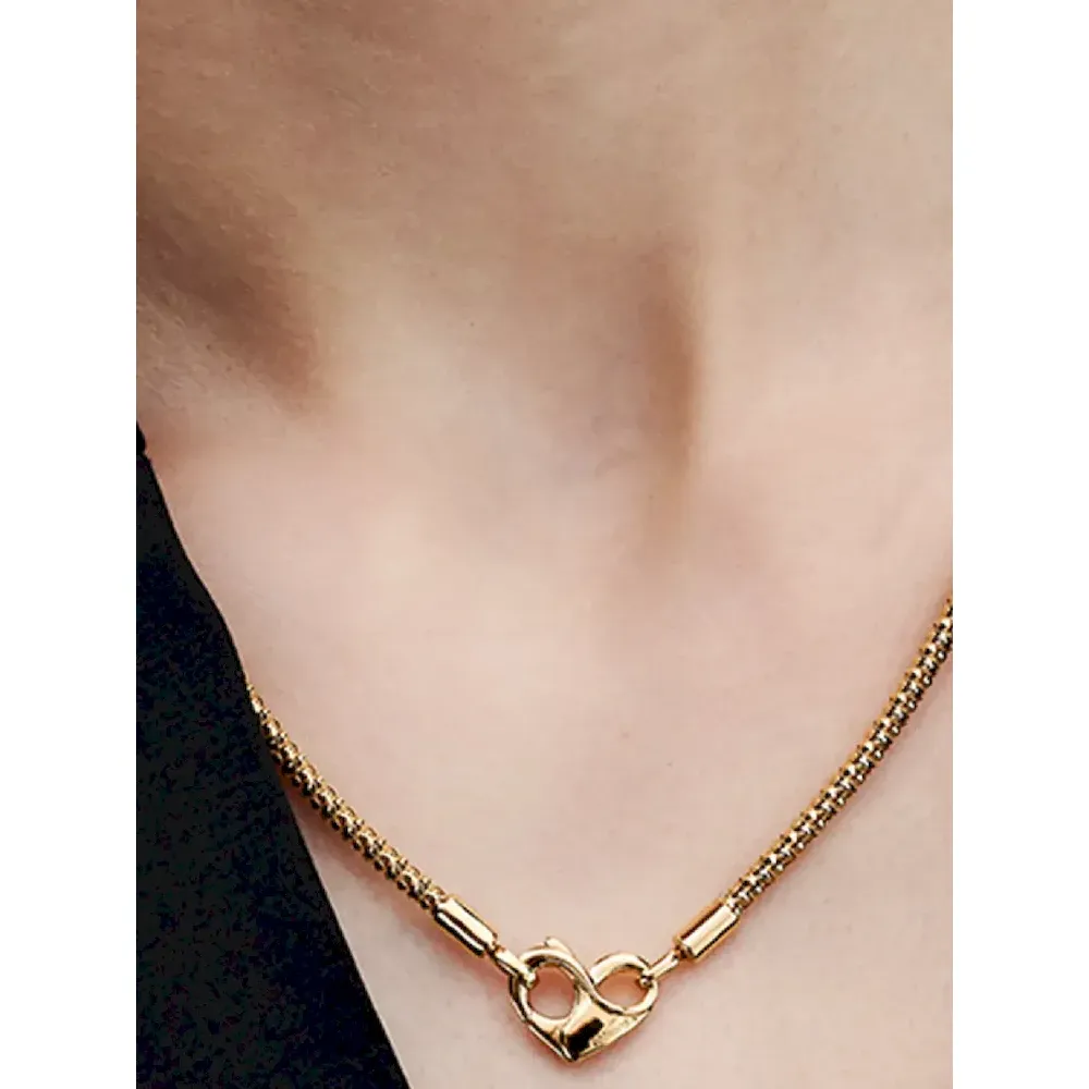 Update your collection. Hand-finished in 14k gold plating, this studded chain necklace features a flexible, textured chain that’s the definition of modernity. An infinity-detailed openable heart clasp adds a sweet touch.