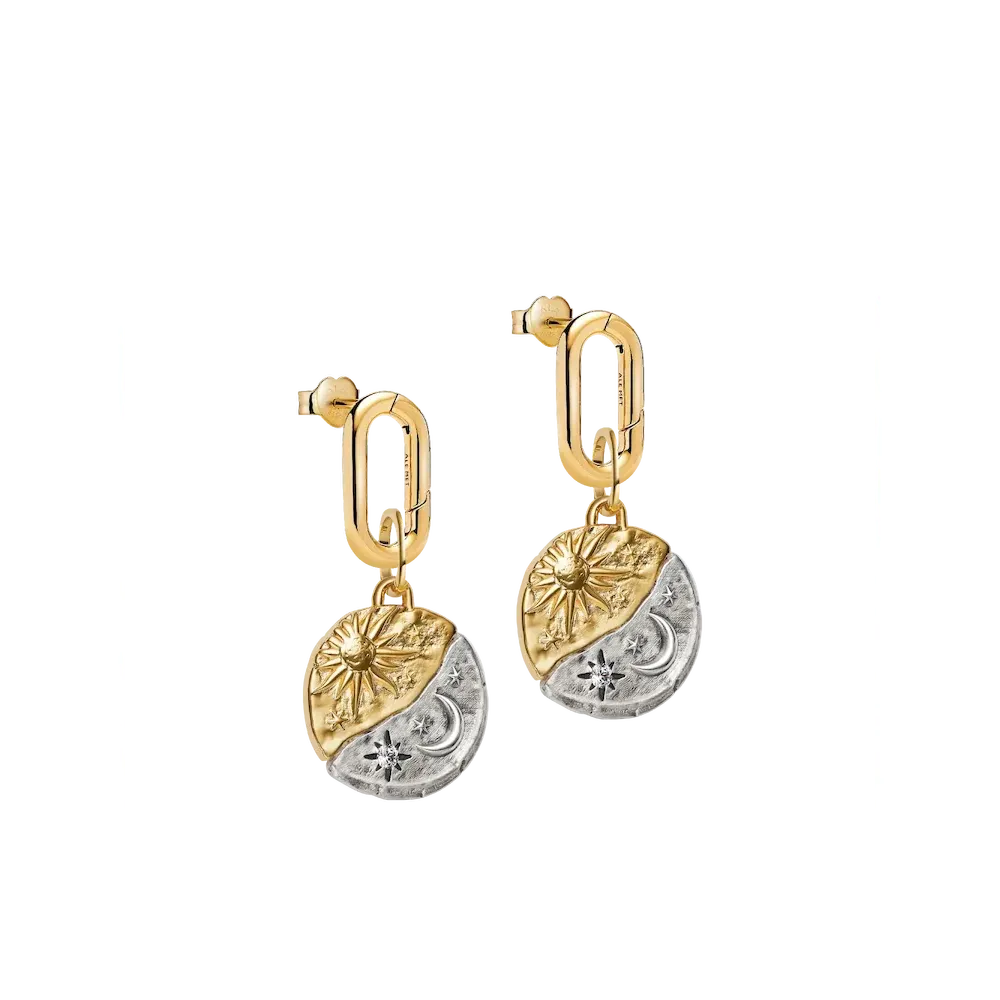 Sun & Moon Medallion Charm Earrings