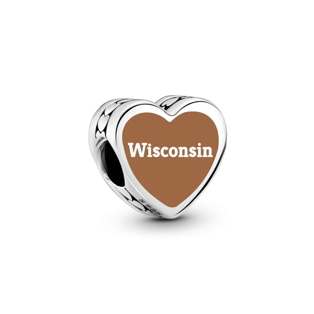 Cheese, lakes, and love, this Wisconsin heart charm in sterling silver is a Midwest essential.
